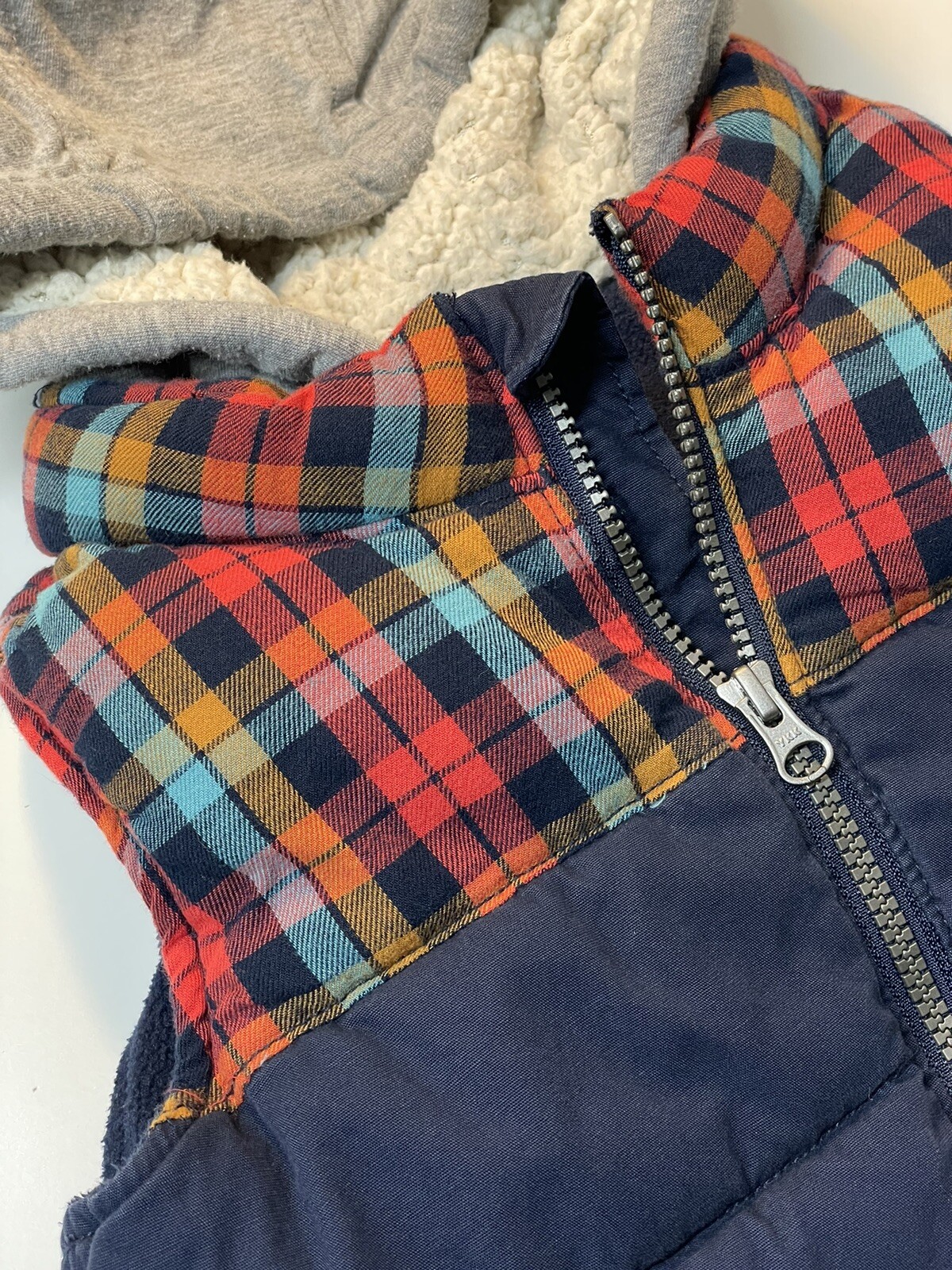 как выглядит OLD NAVY BOYS PUFFER/SHERPA LINED VEST BLUE/PLAID SIZE: 5T GREAT CONDITION фото