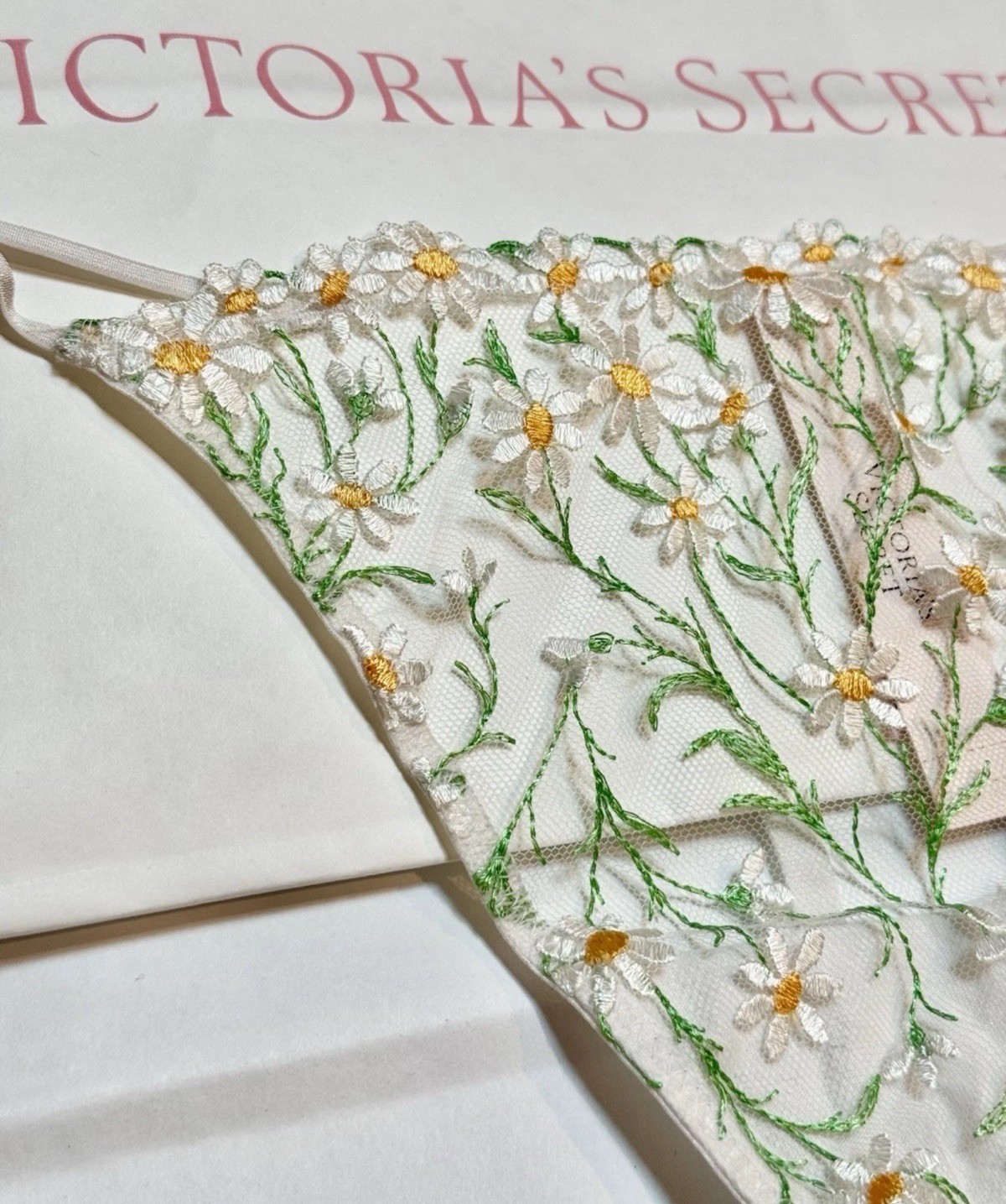 как выглядит VICTORIAS SECRET DREAM ANGELS White Daisy EMBROIDERED V-string THONG PANTY M фото