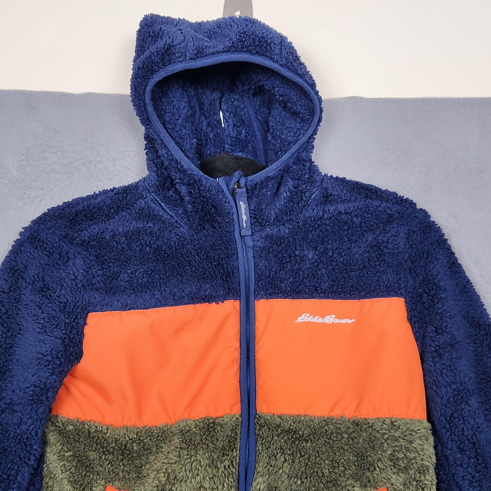 как выглядит Eddie Bauer Jacket Kids Small 7/8 Blue Orange Sherpa Fleece Hooded Full Zip фото