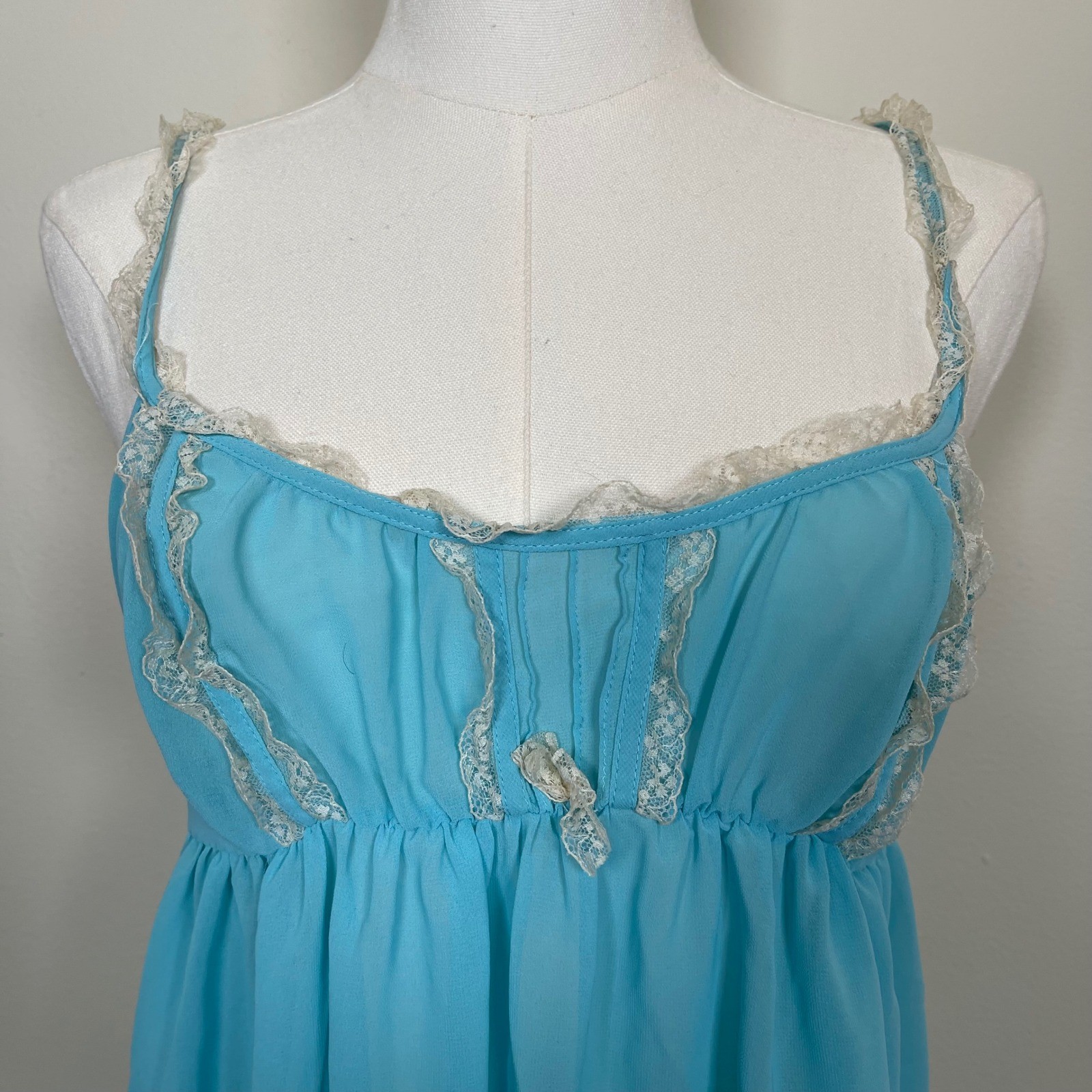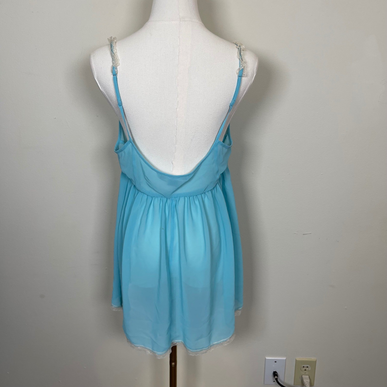 как выглядит Vintage Victorias Secret Blue Lace Trim Babydoll Nightgown L Sheer Chemise Y2K фото