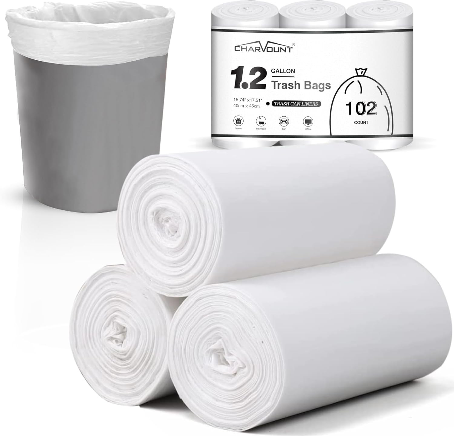 Small Trash Bags 1.2 Gallon, 102 Count Garbage Bags Bathroom Trash Can Liners,Fi