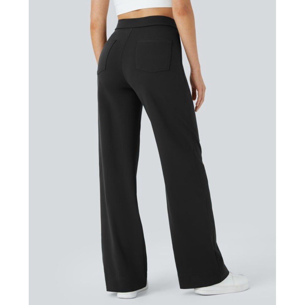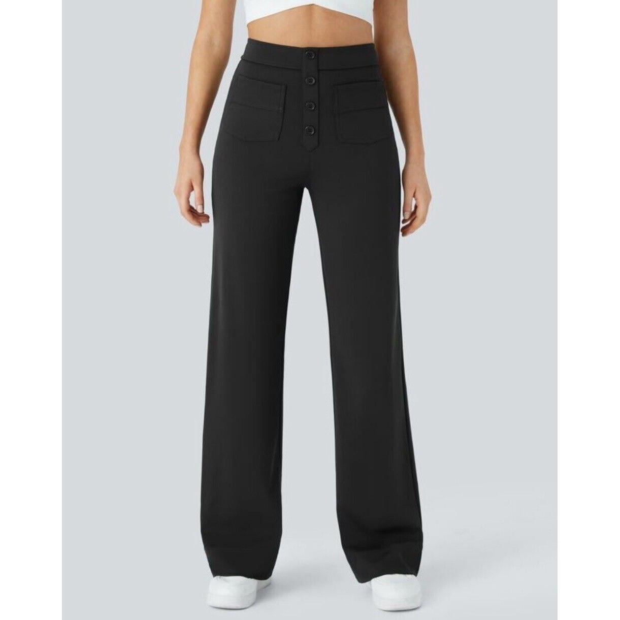 Halara High Waisted Wide Leg Pants Womens S Crop Black Pull On Stretch