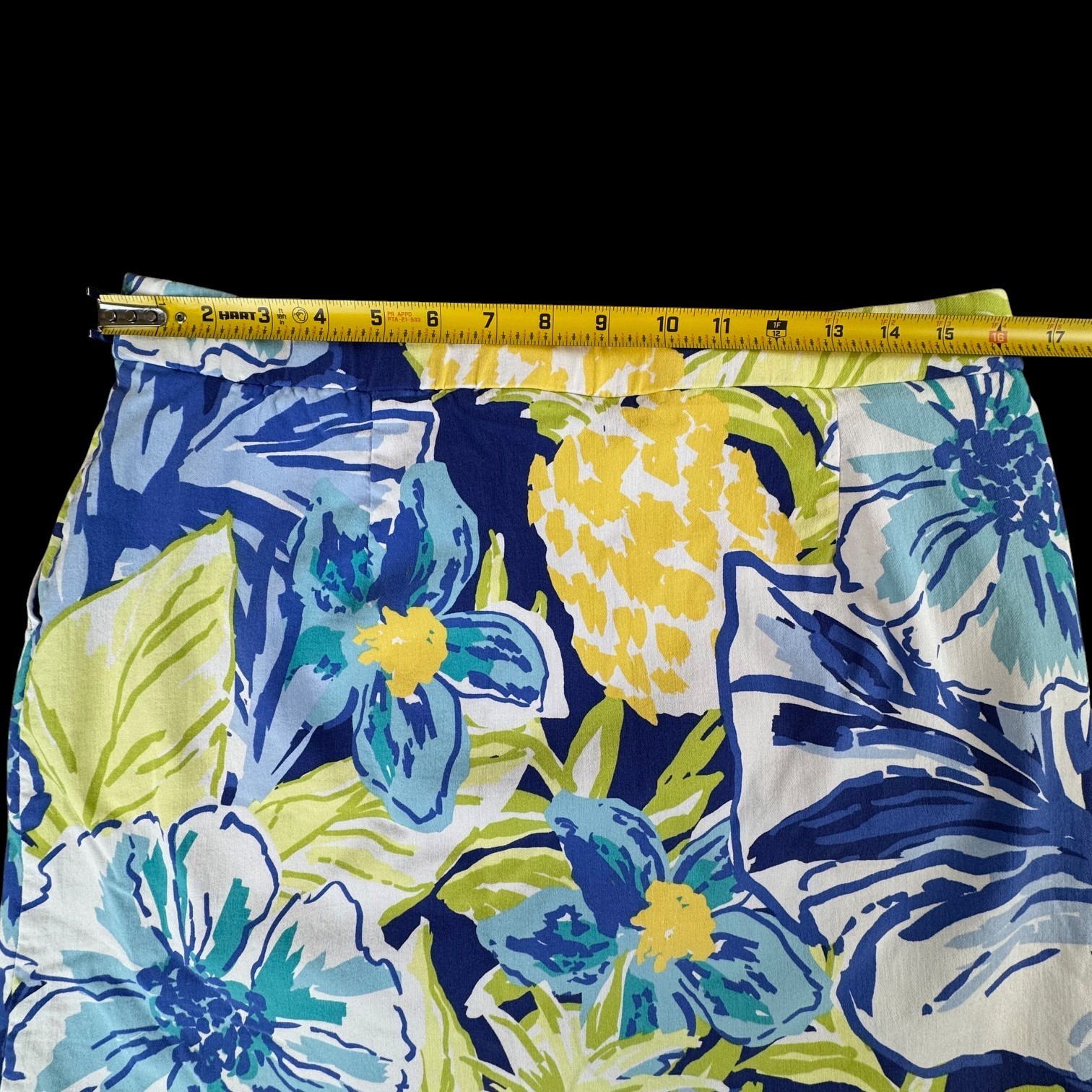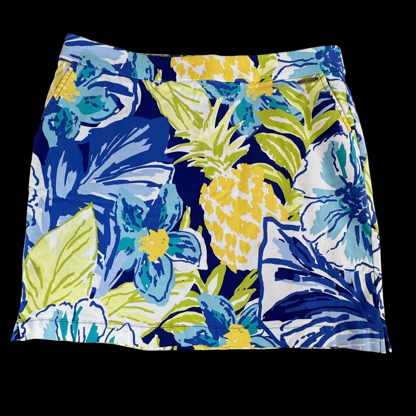 Rafaella Blue Yellow Tropical Floral Print Stretch Skirt Skort Large