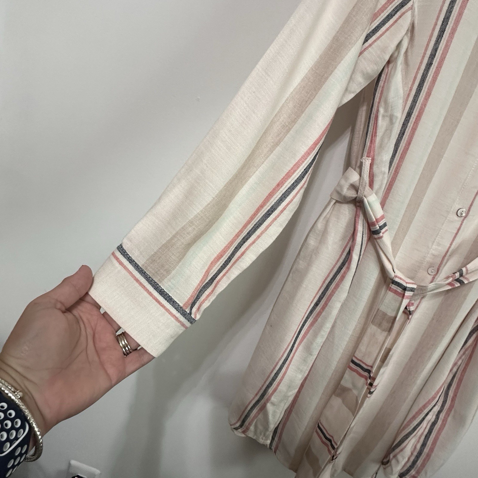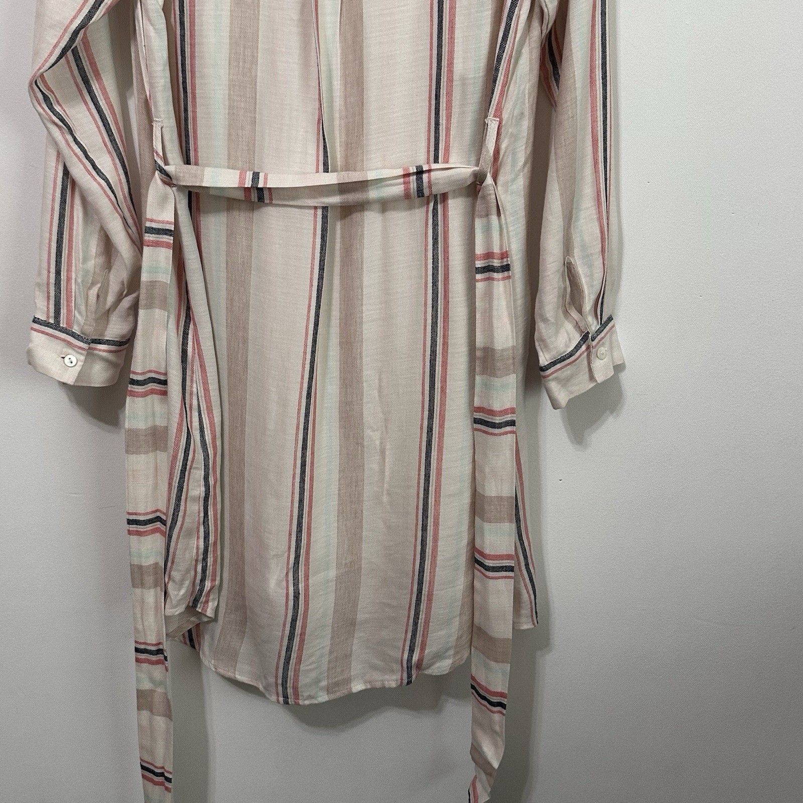 как выглядит Skies Are Blue Shirt Dress S Long Sleeve Stripe Rayon Lined Summer Party NEW фото