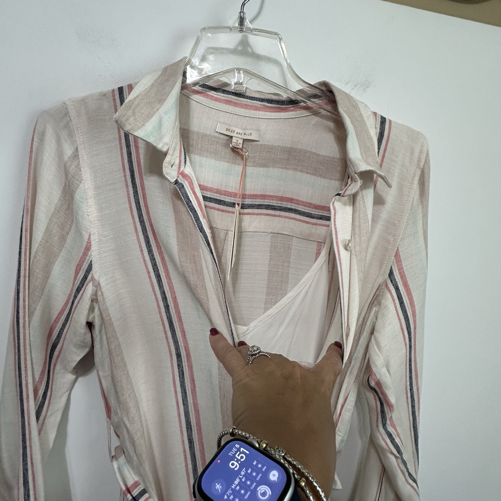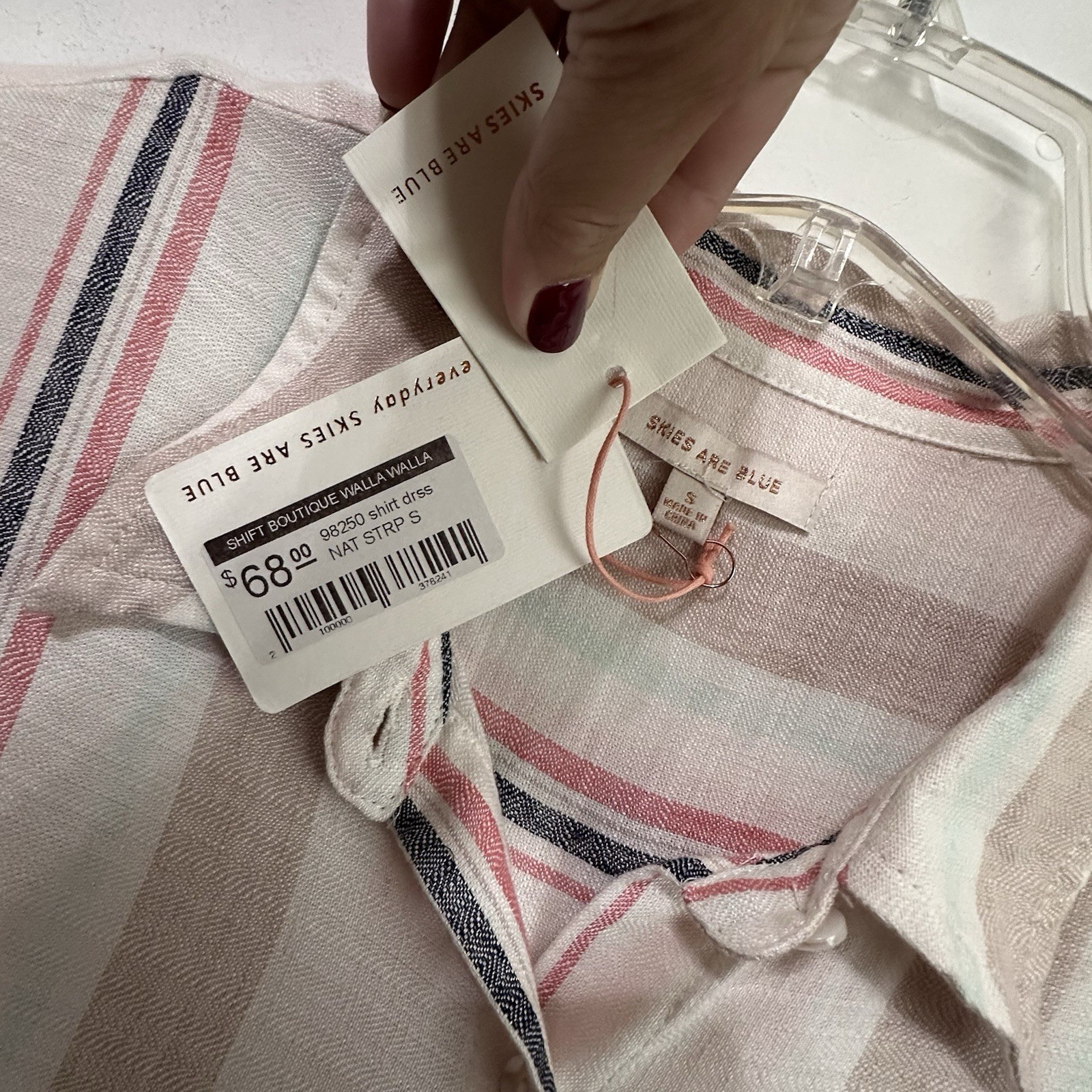 Skies Are Blue Shirt Dress S Long Sleeve Stripe Rayon Lined Summer Party NEW