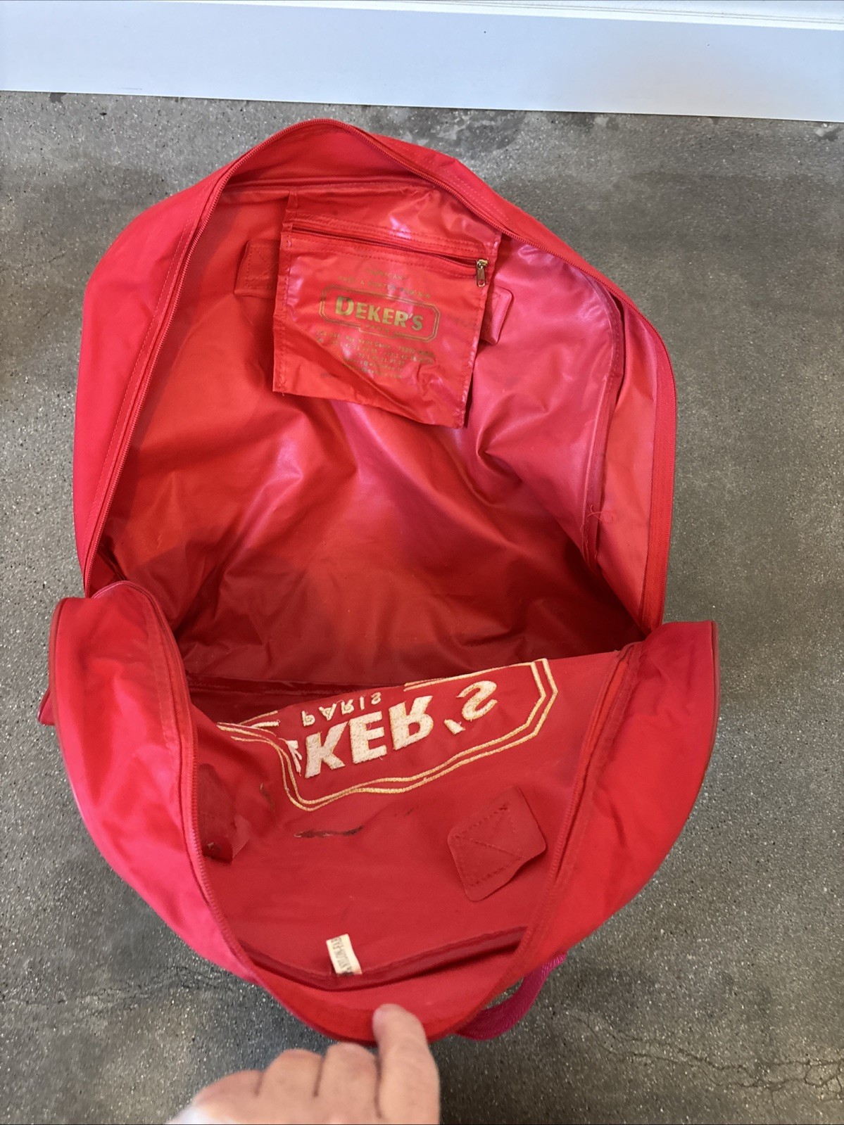 Decker s Paris red nylon duffel bag vintage