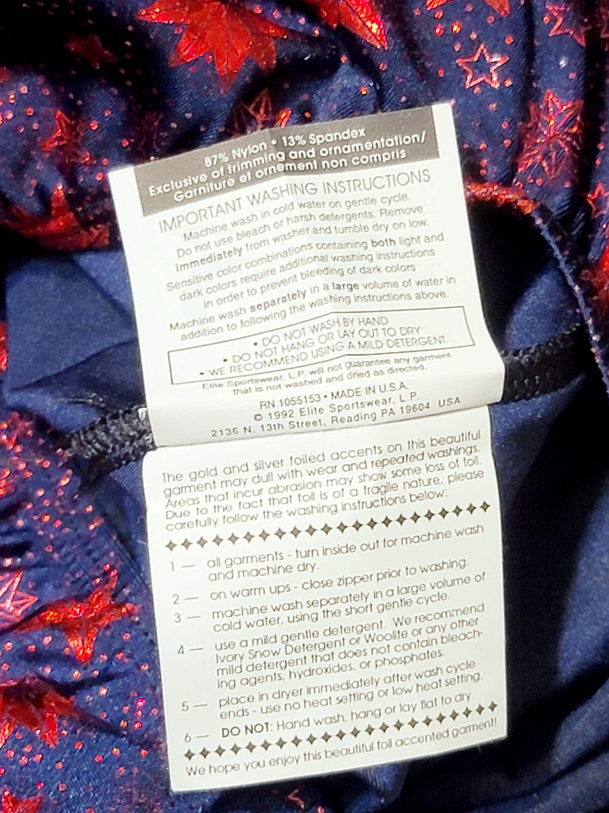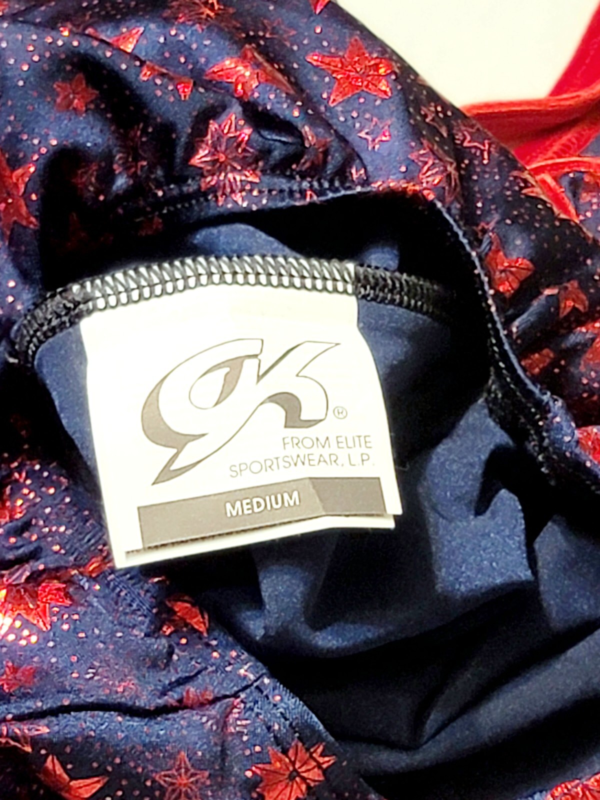 GK Elite Red Foiled Star Spangled Premium LS Navy Leotard Velvet Trim AM Adult M