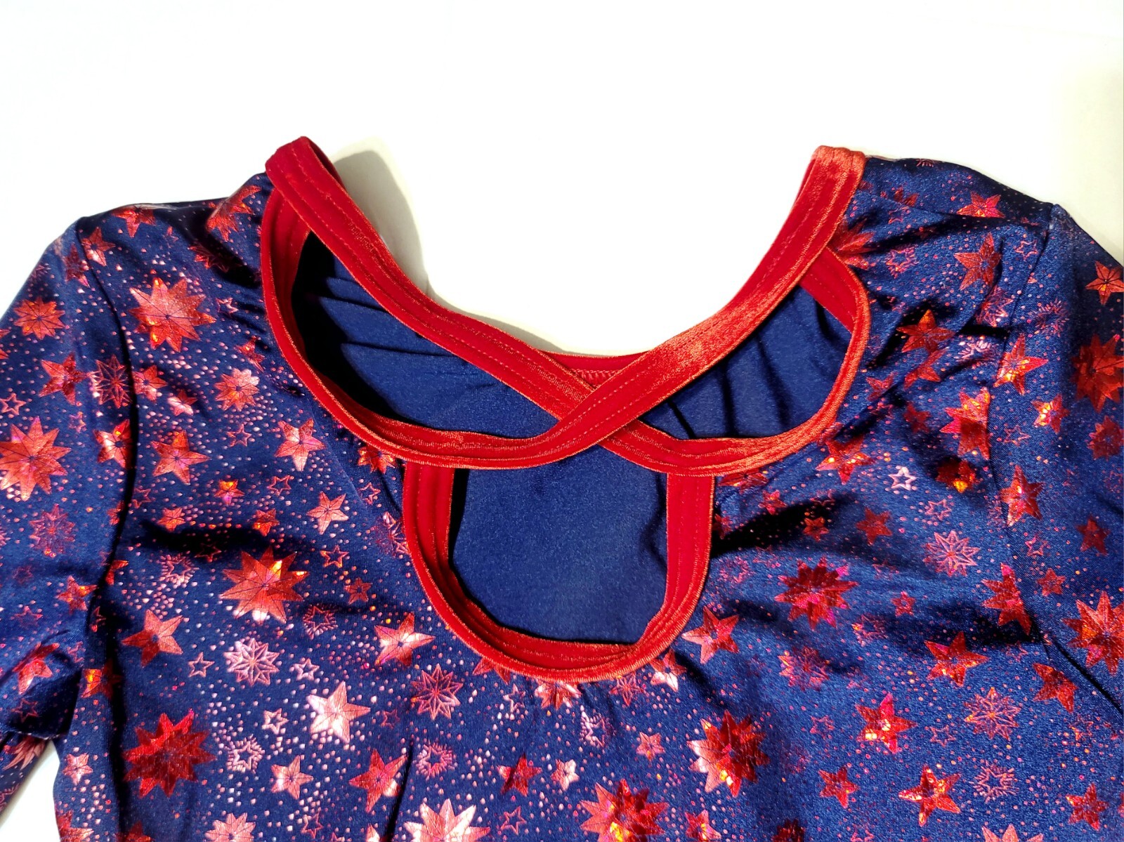 как выглядит GK Elite Red Foiled Star Spangled Premium LS Navy Leotard Velvet Trim AM Adult M фото