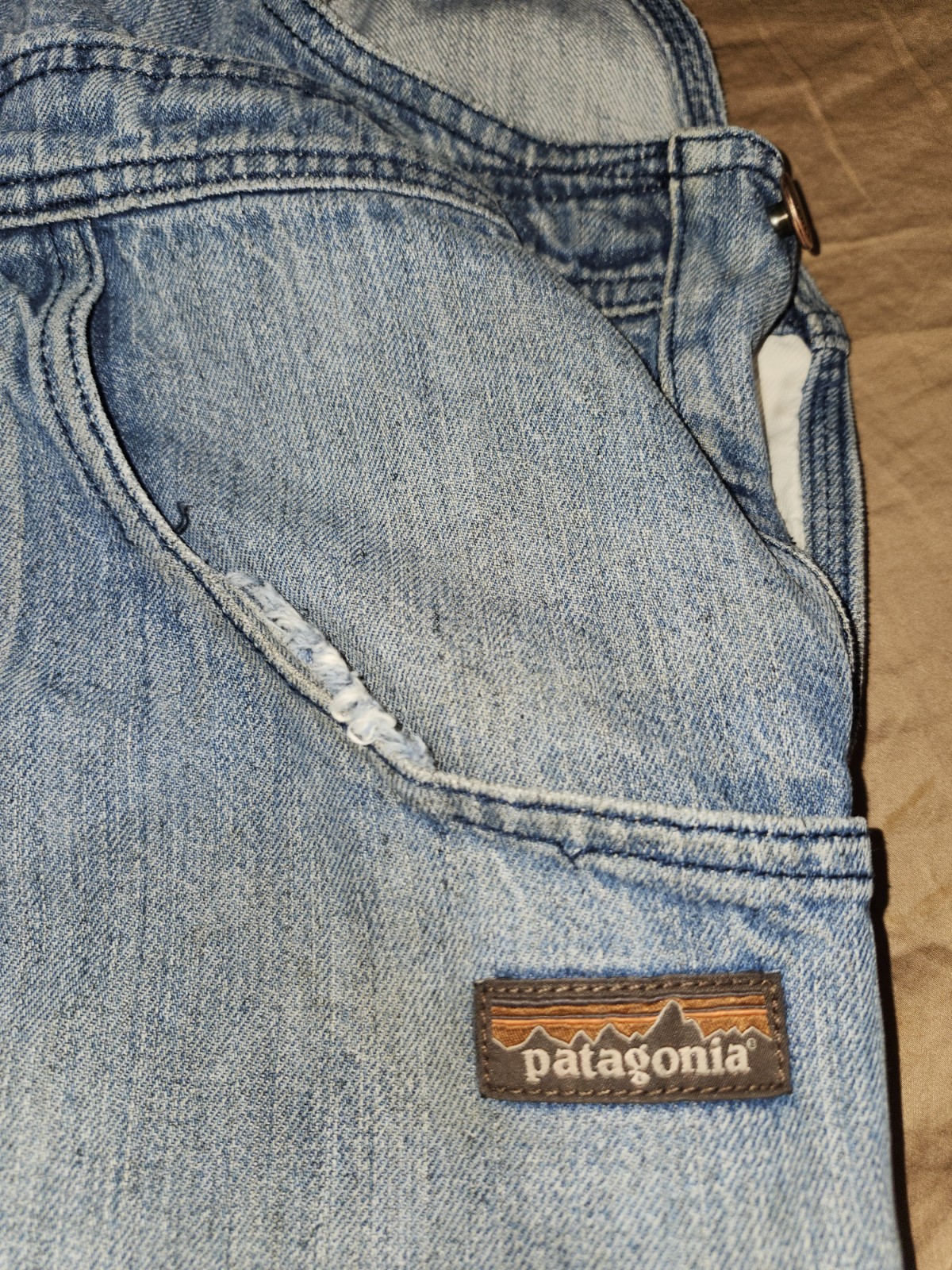 как выглядит Patagonia Thrashed Womens XS Blue Steel Forge Denim Jean Bibs Work Overalls USA фото