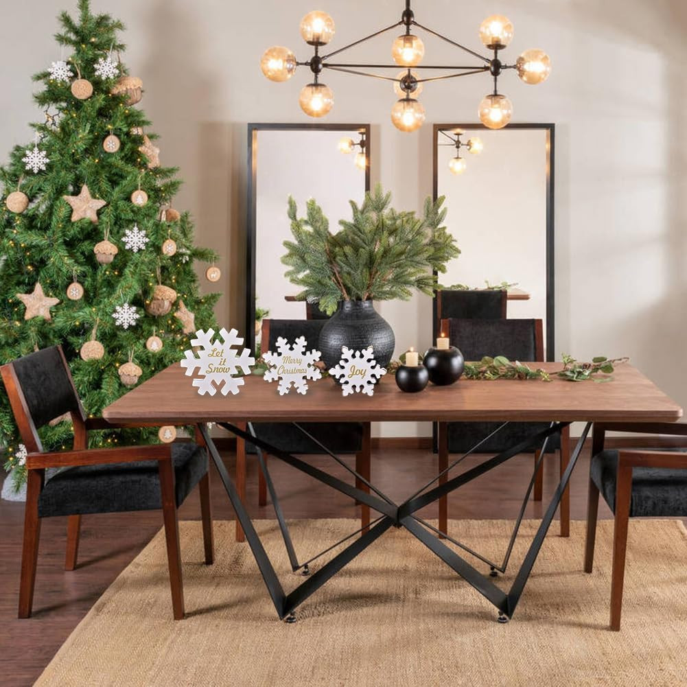 3-Pack Wooden Snowflake Decor Signs, Merry Christmas Table Decor, Winter Home De