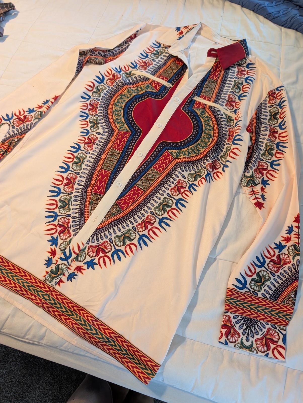 Men's Dashiki African Printed Fabric Silky Soft XXL Button Down Dress Shirt