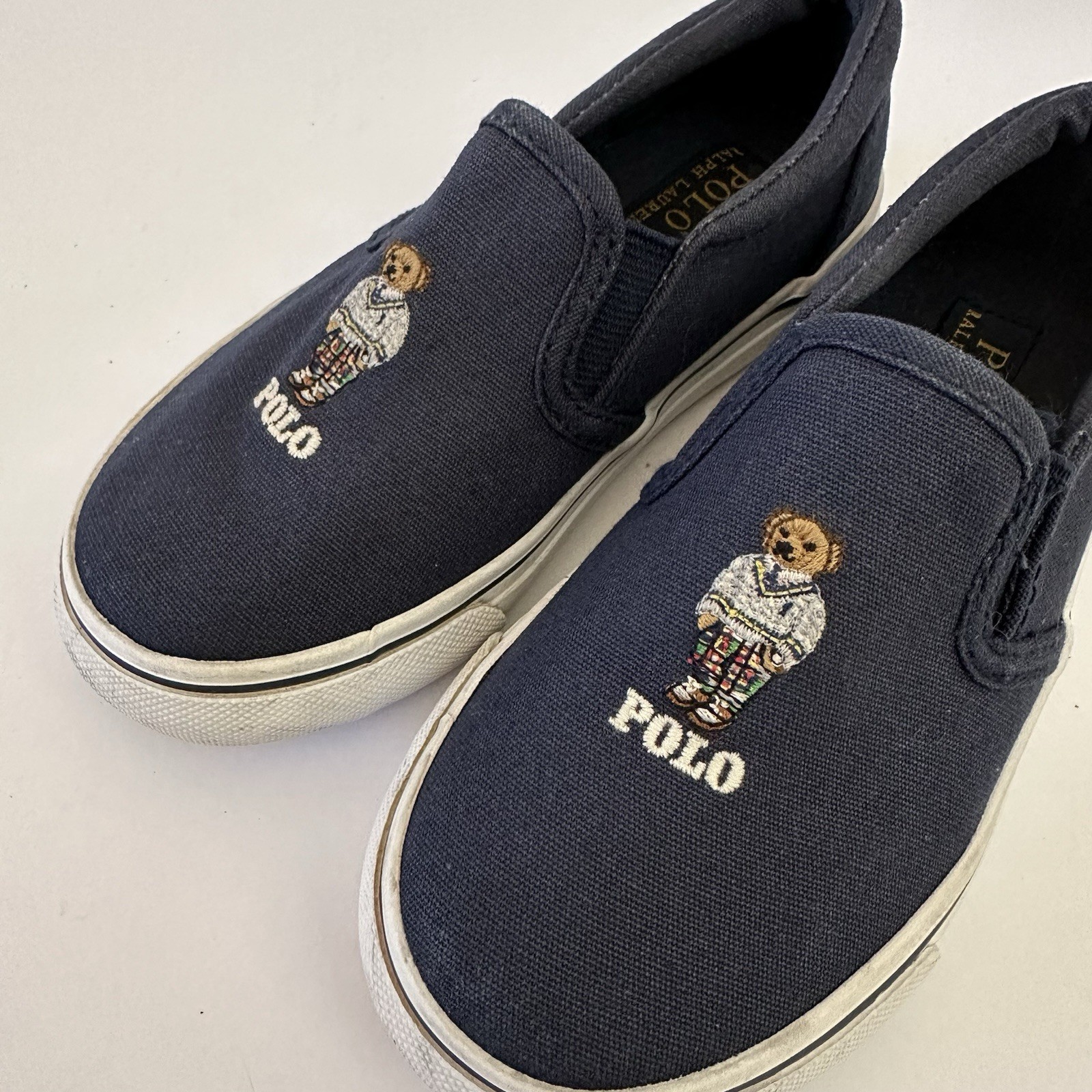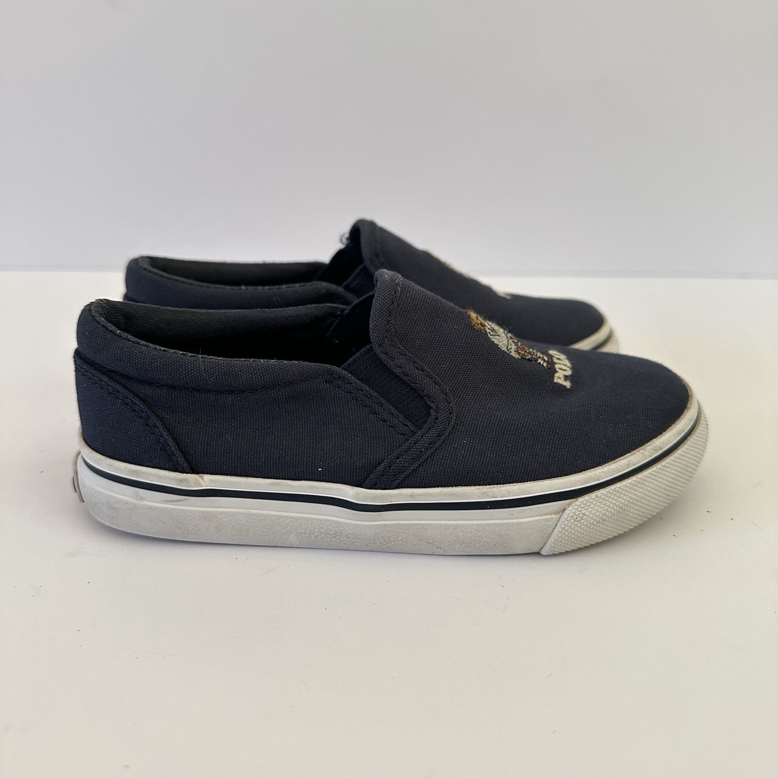 Polo Ralph Lauren Boys Girls Size 10 Keaton Slip On Bear Shoes Loafers Navy Blue