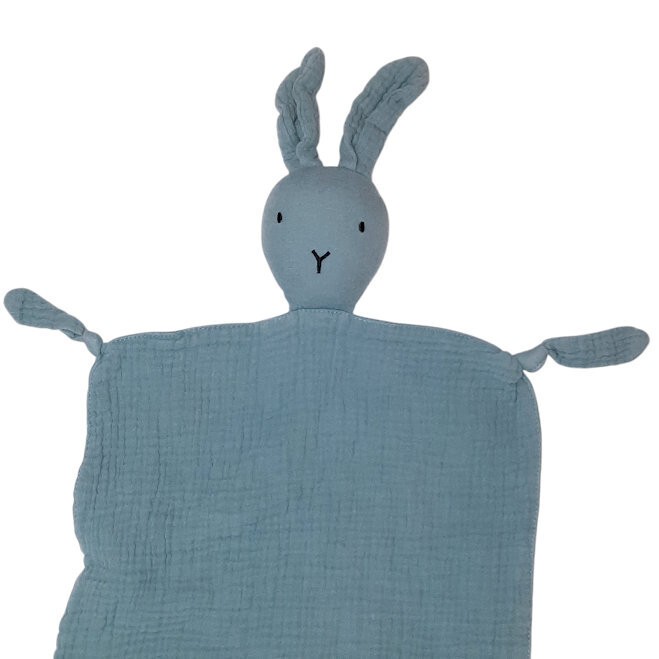 Teal Bunny Baby Knotted Lovey Security Muslin Blanket 9 X 10