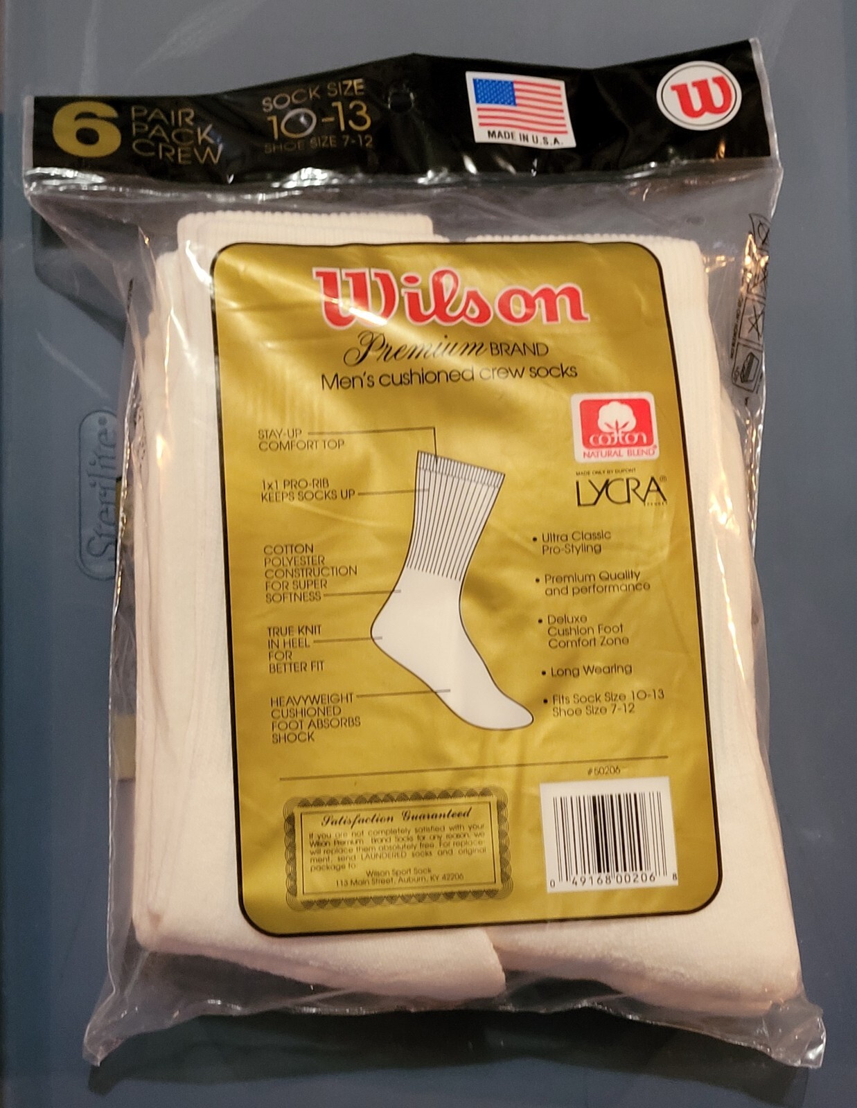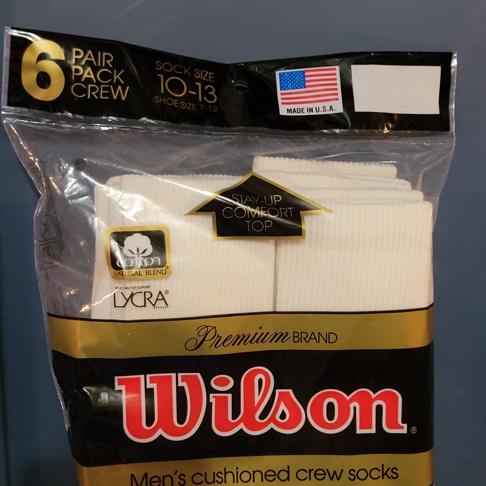 как выглядит Wilson Mens Crew Socks Lycra New Old Stock Vintage 6 Pack White USA Sealed фото