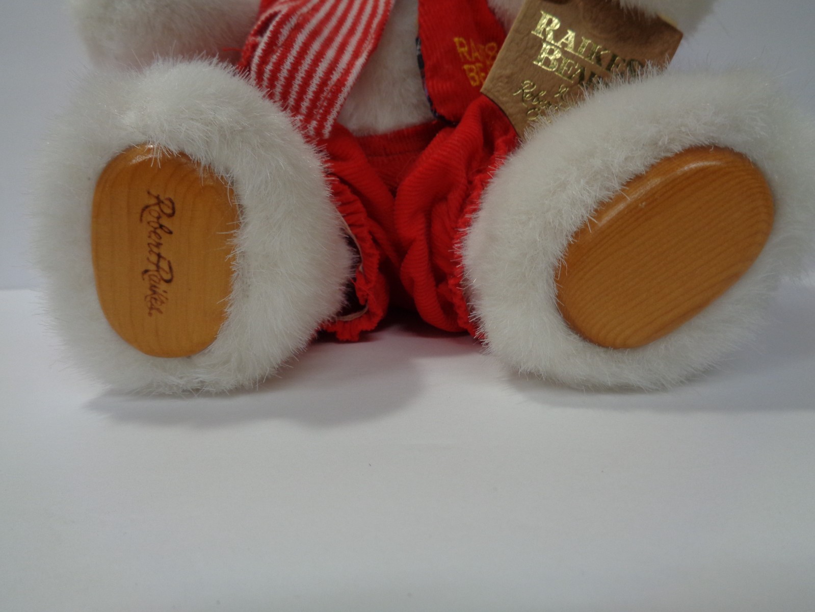 как выглядит Vintage 1989 Robert RAIKES BEAR Red Santa Bear Plush Wooden Face Christmas W/TAG фото