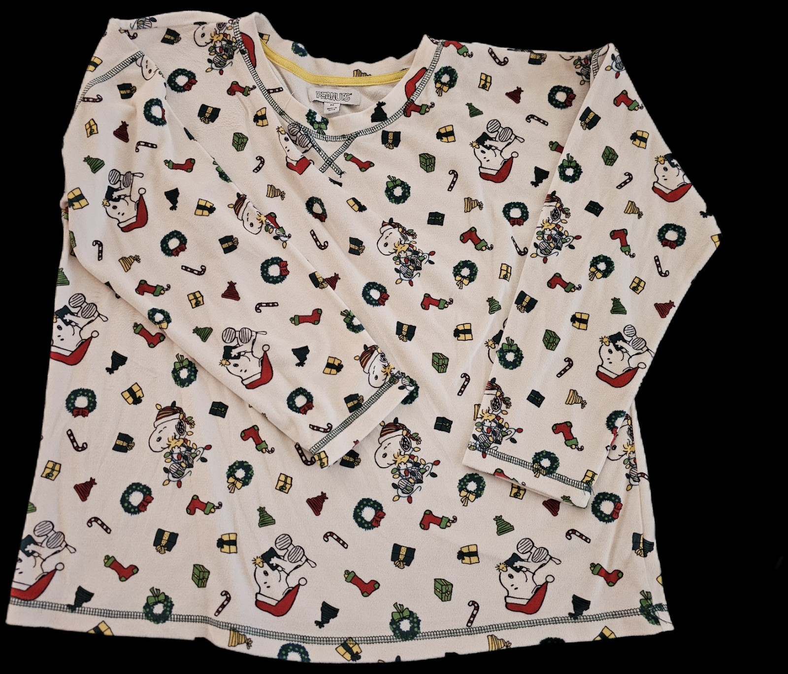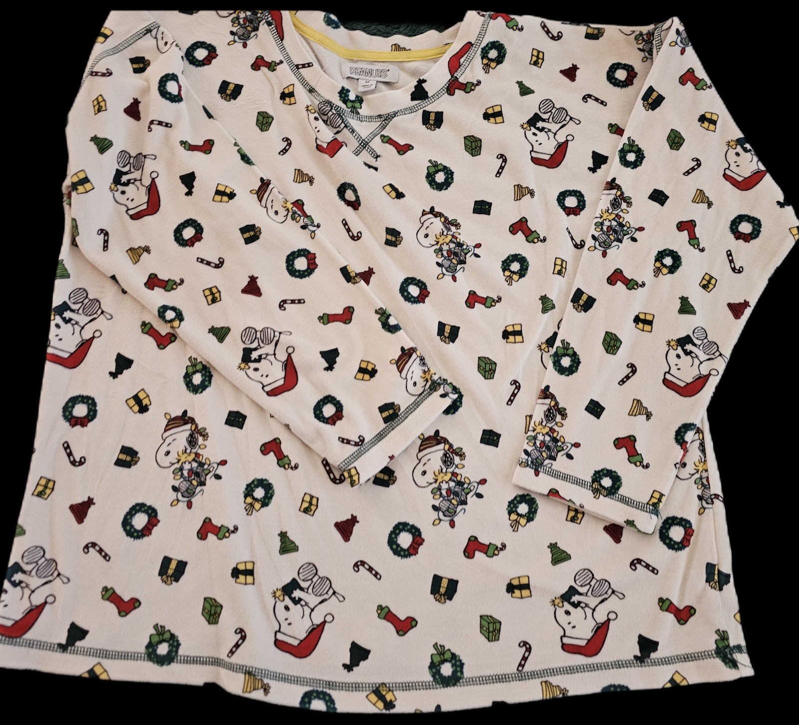 Peanuts Snoopy Christmas Fleece Pajama Top Women s M Long Sleeve Holiday Lounge