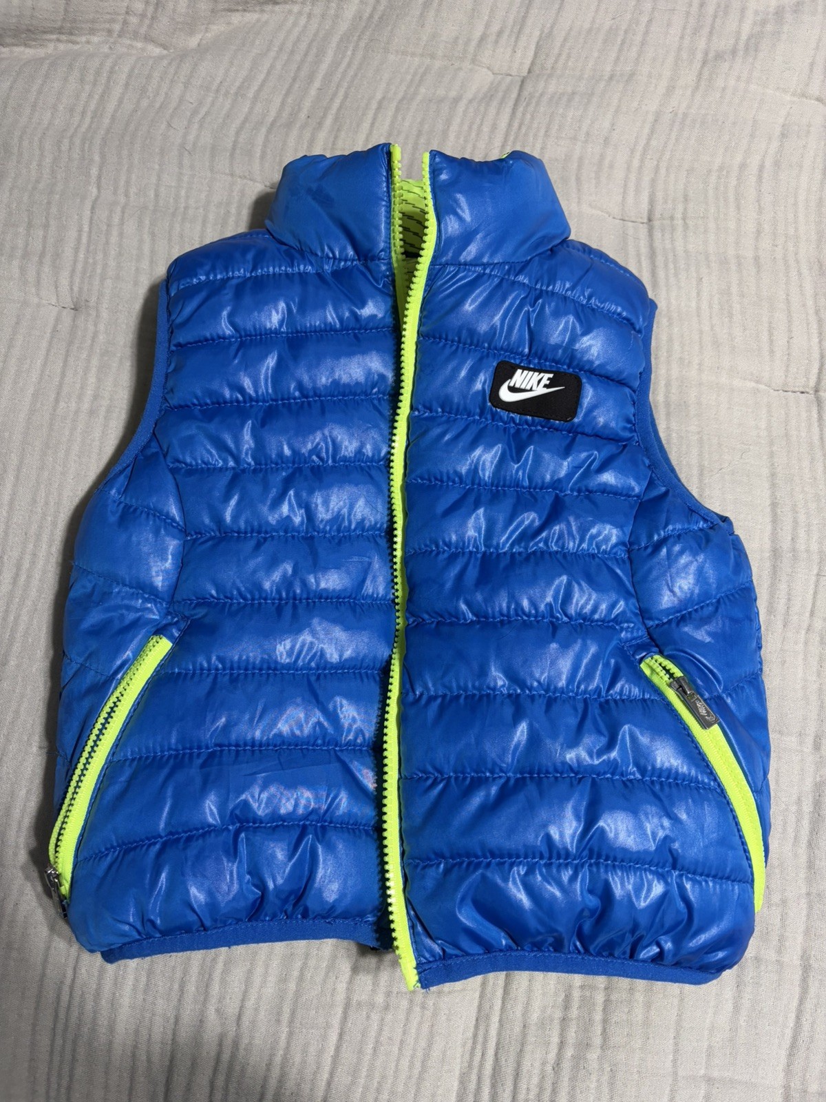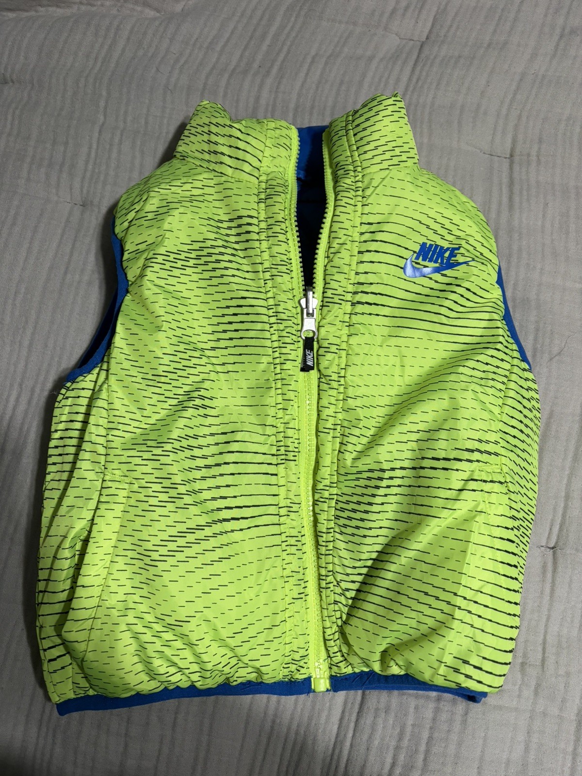 Nike Boy's Blue/ Yellow Reversible Puffer Vest w/ Black Logo Full Zip Size 4T