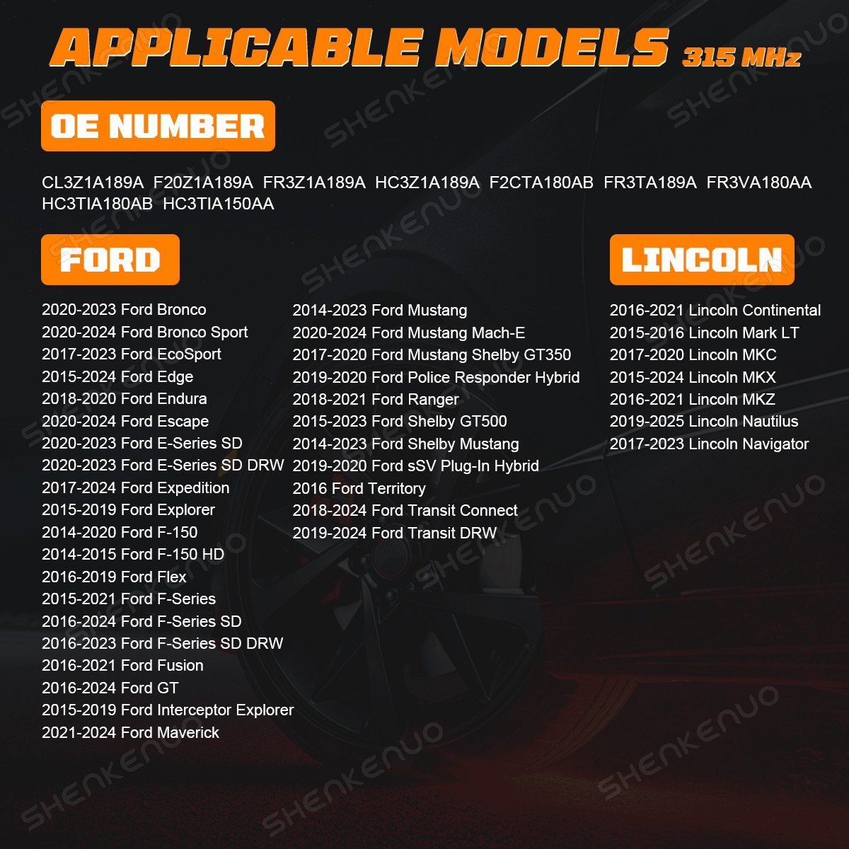 Fit for: For Ford F-150, For Ford Explorer, For Ford Mustang, For Lincoln Mark LT etc