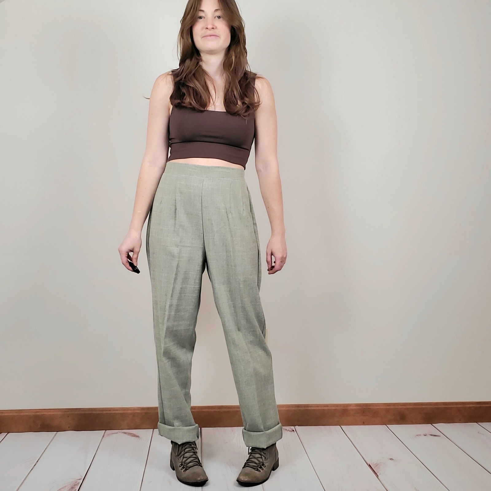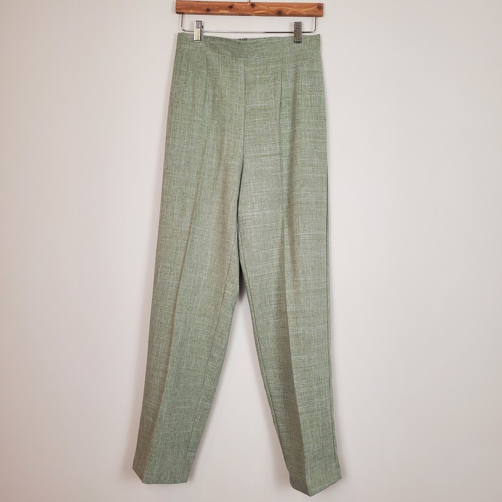 как выглядит Vintage 90s Y2K Matcha Latte Green White Cross Hatch High Rise Trousers Womens M фото