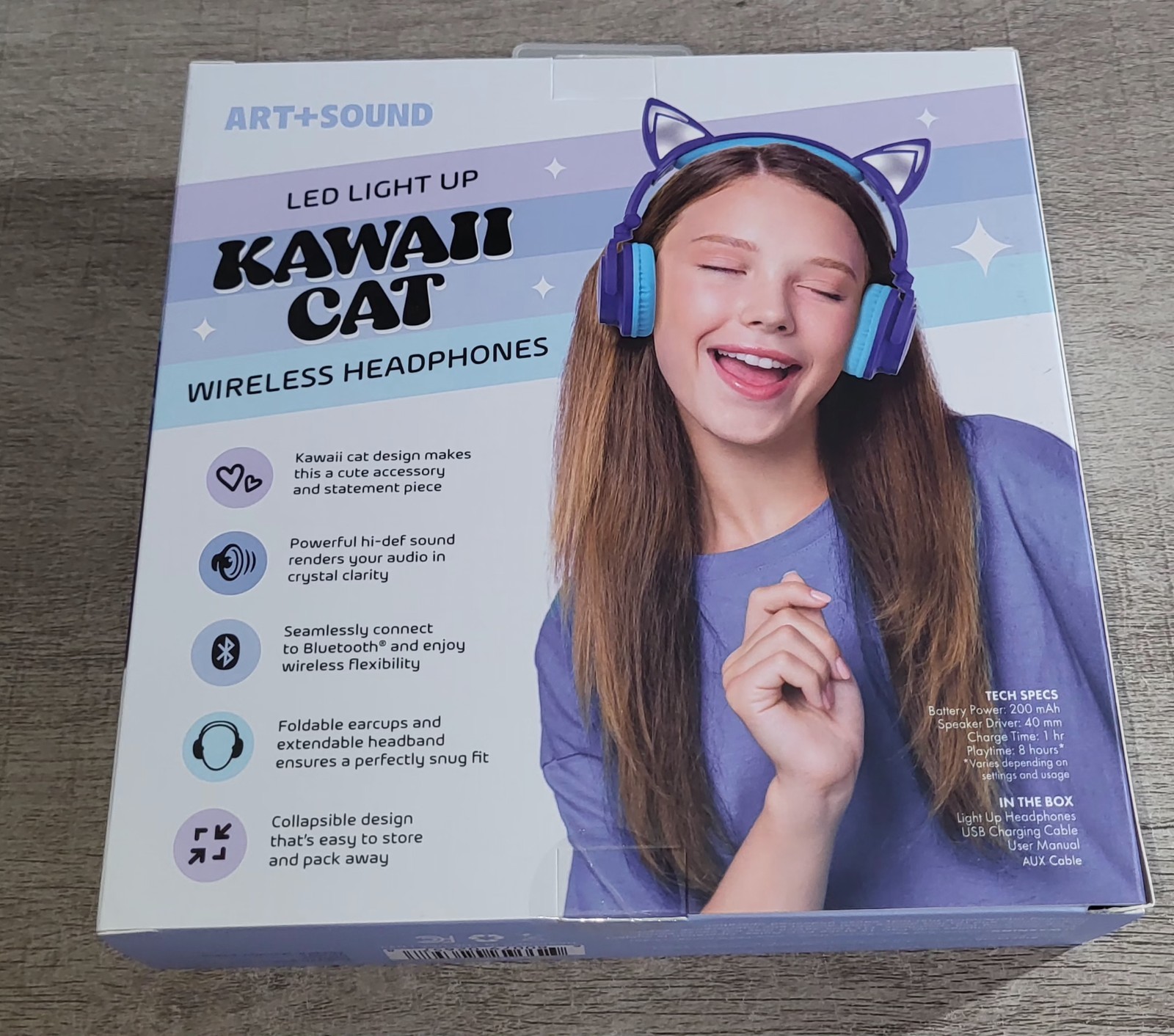 Art Sound Kawaii Cat LED Light Up Bluetooth Wireless Music Gaming Headphones