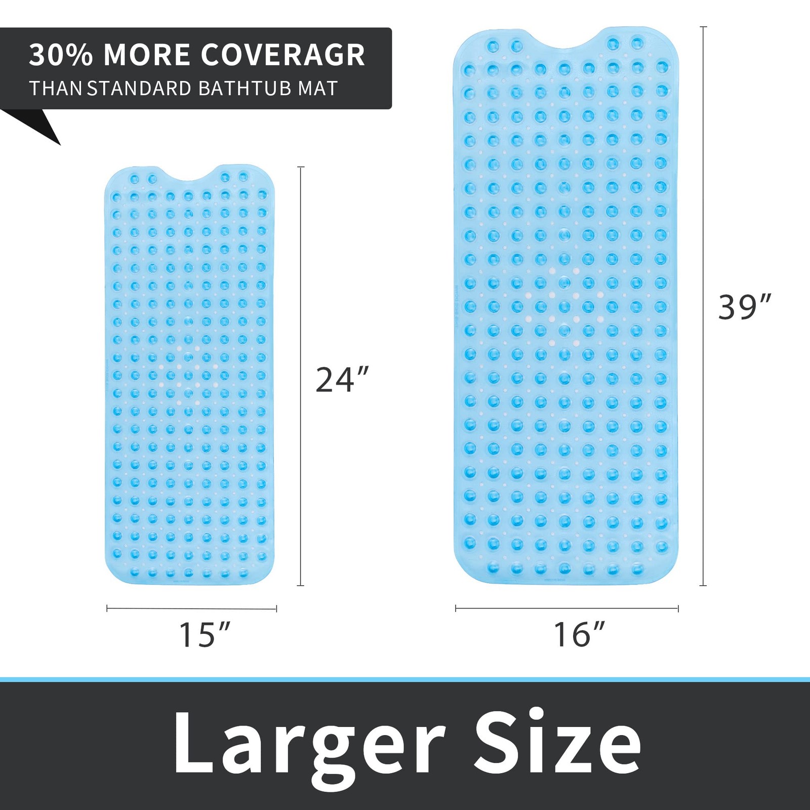 Shower Mat Extra Long 16 x 39 Non-Slip Bath Mat for Tub with Suction Cups a...