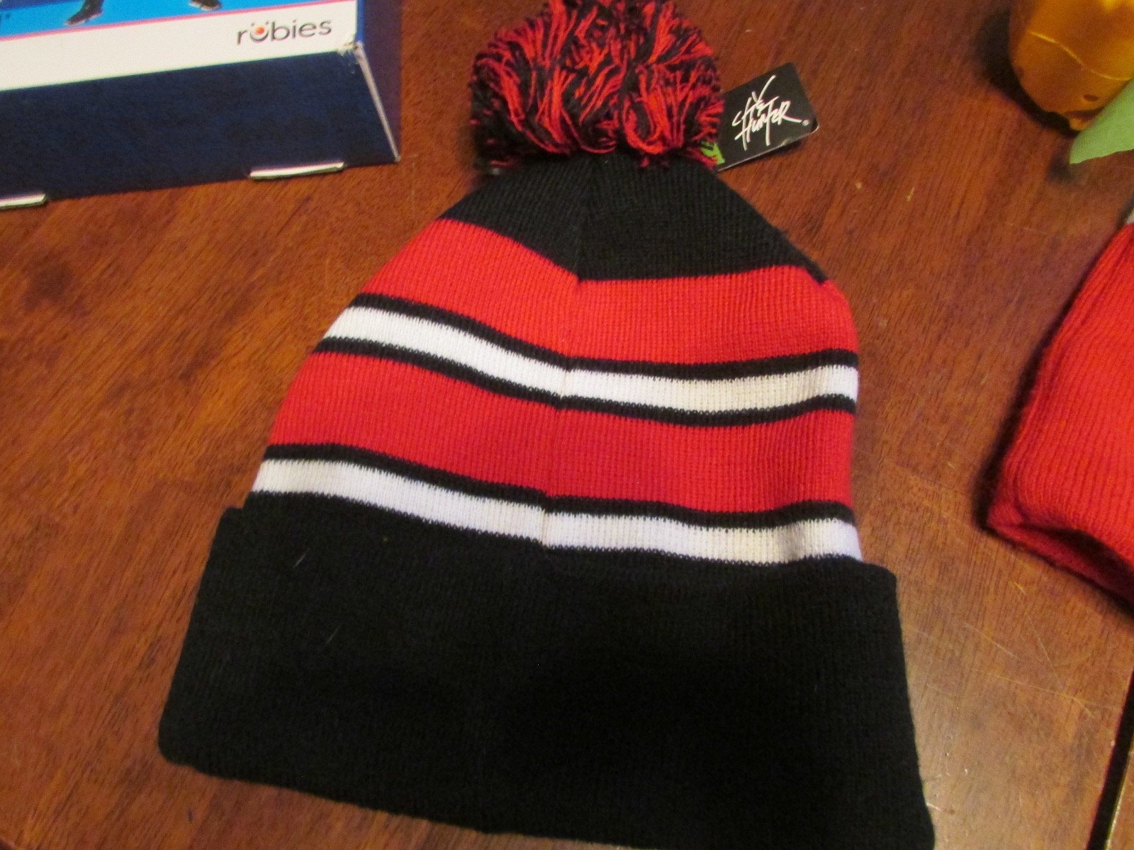 • Chicago Blackhawks Knit Beanie Pom Winter Hat Red black white NEW