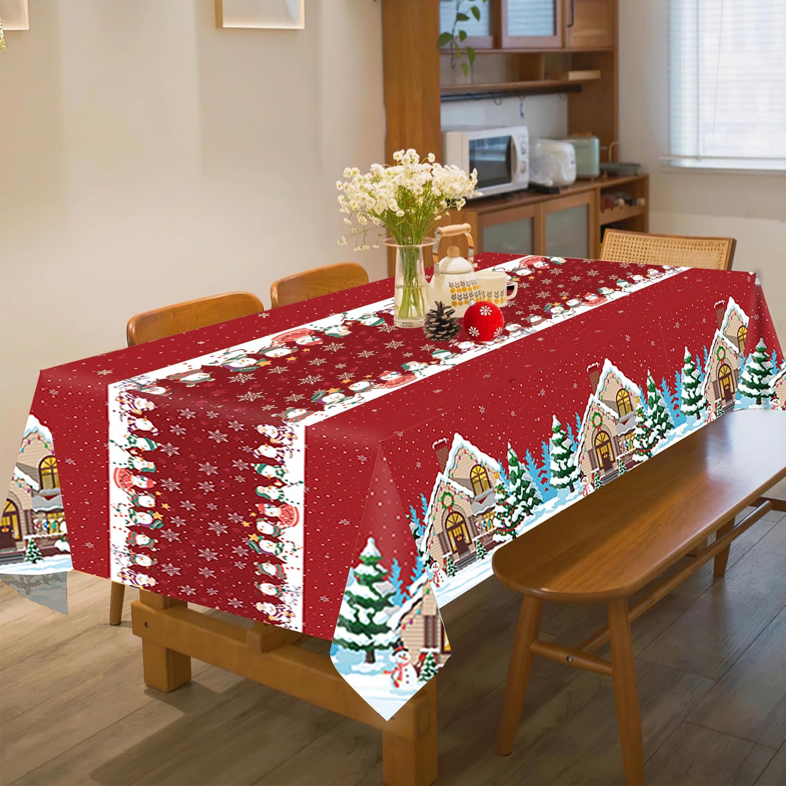 Christmas Party Decorations Snowman Plastic Tablecloth for Christmas Decora...