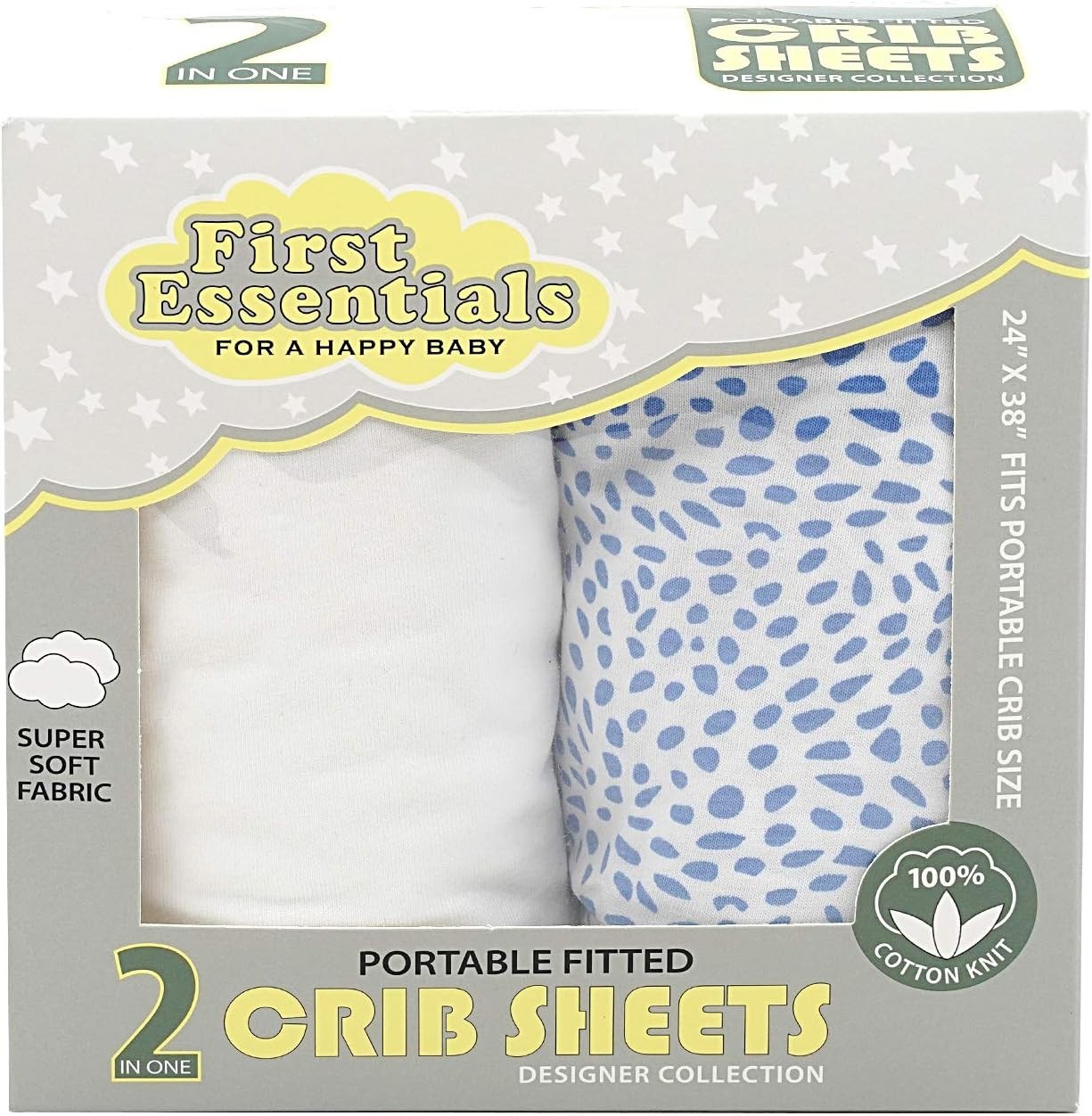 Portable Crib Sheet 2 Pack 100 Cotton Knit 24 x 38 Blue