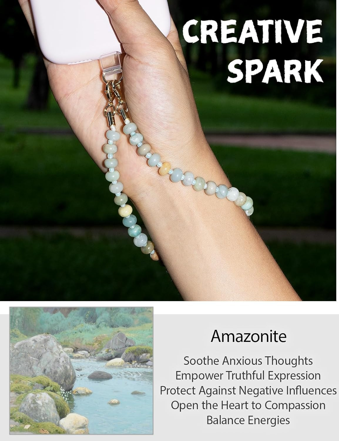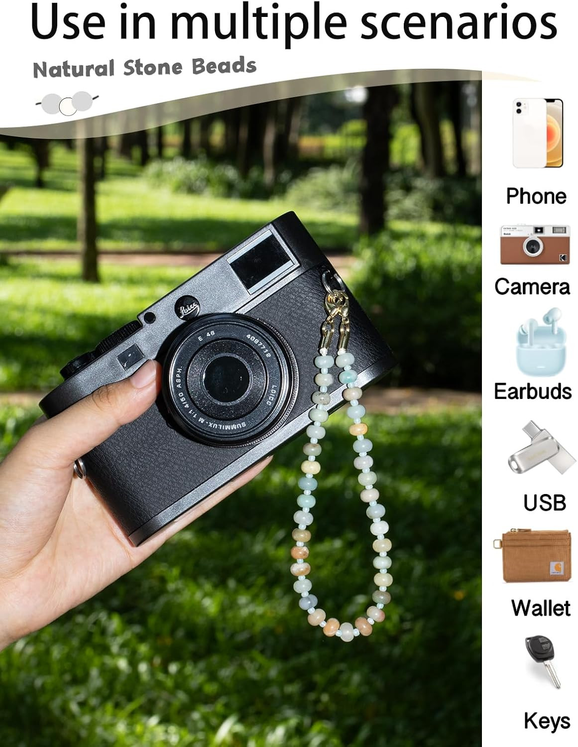 Handmade Natural Stone Beaded Charm Cell Phone Camera Lanyard, Hands-Free Wrist