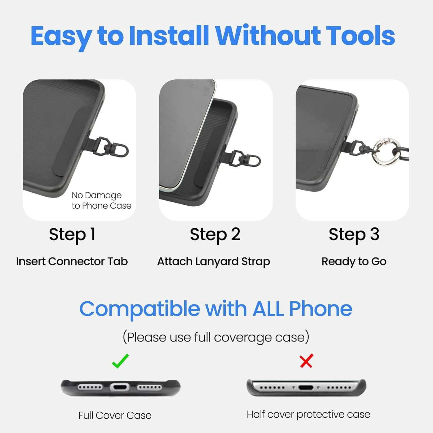 Phone Lanyard Tether, Anti-Theft Strap with Tether Tabs for Hiking, Cycling, Ski