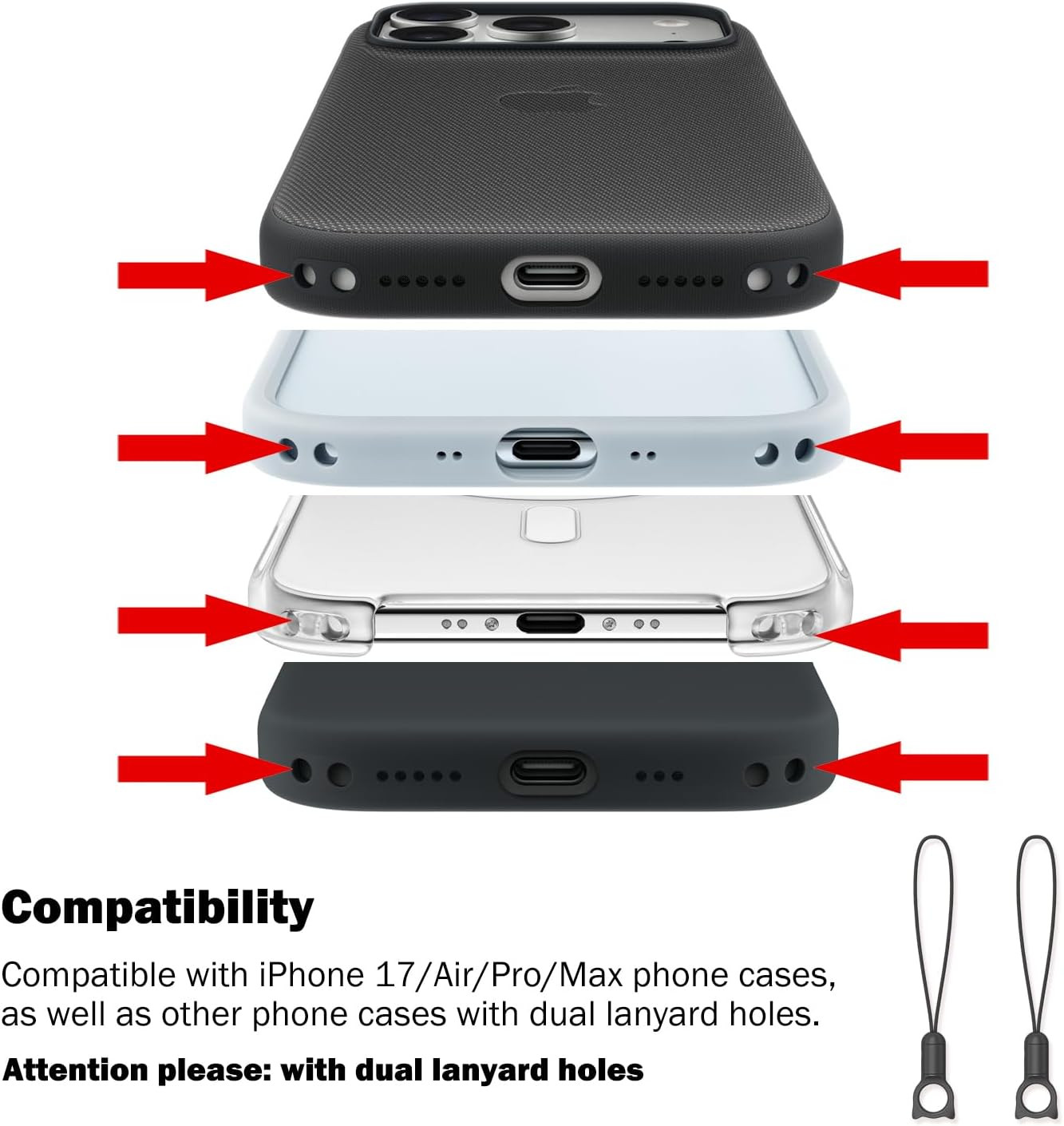 Compatible Devices: phone cases, cameras etc that with dual lanyard holes