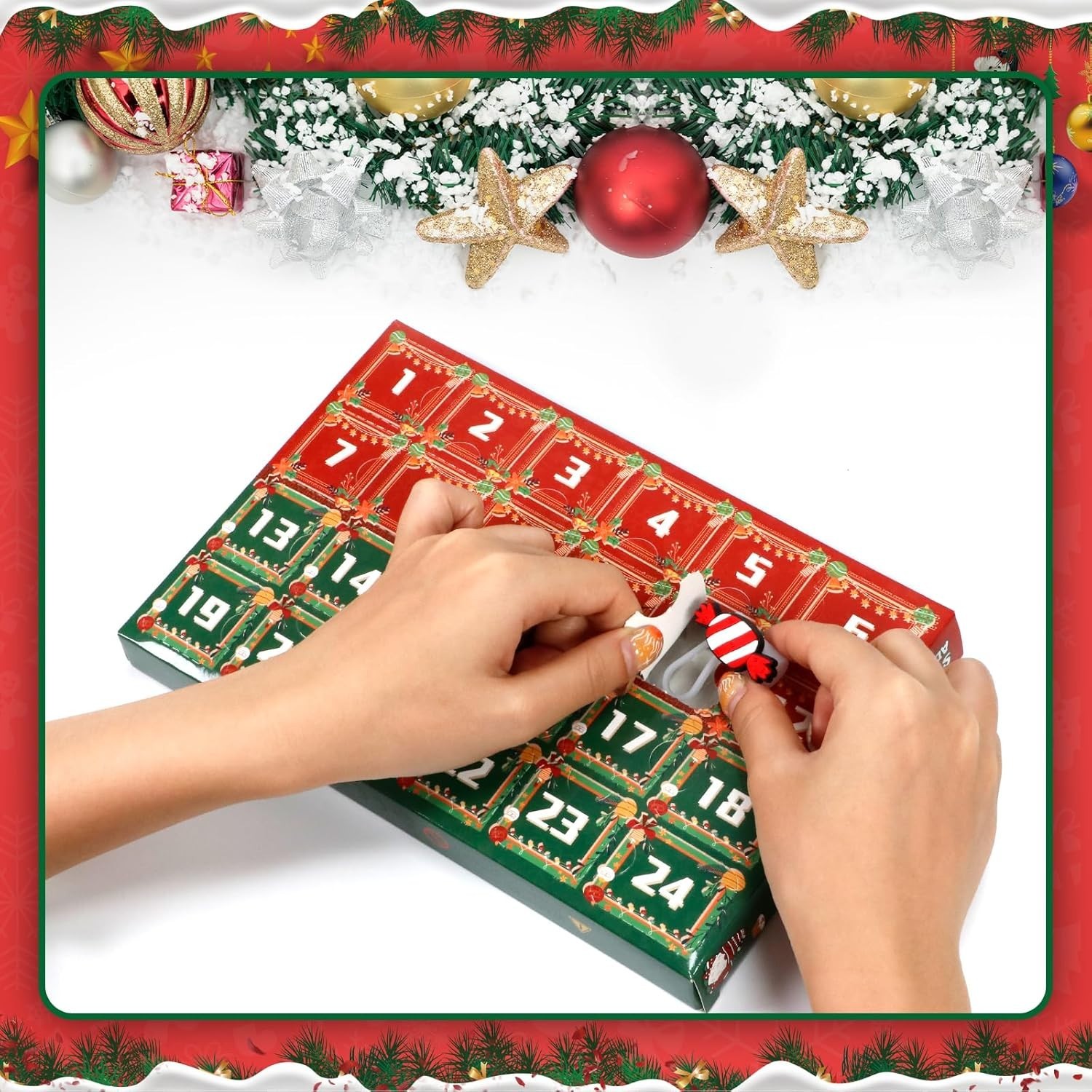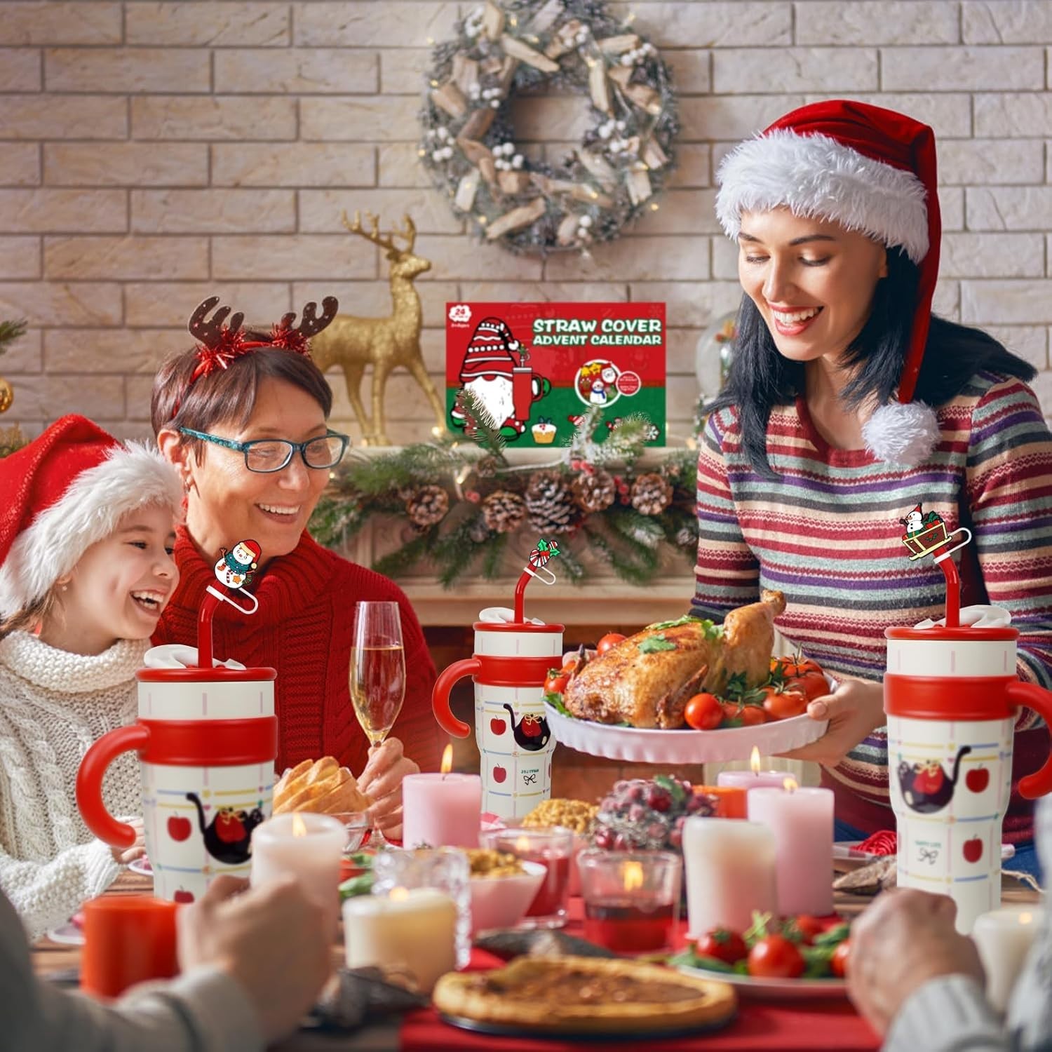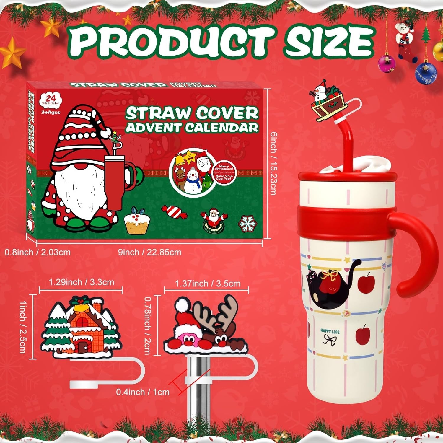 Festive Advent Calendar 2025 with 24 Reusable Straw Toppers for Christmas Cheers