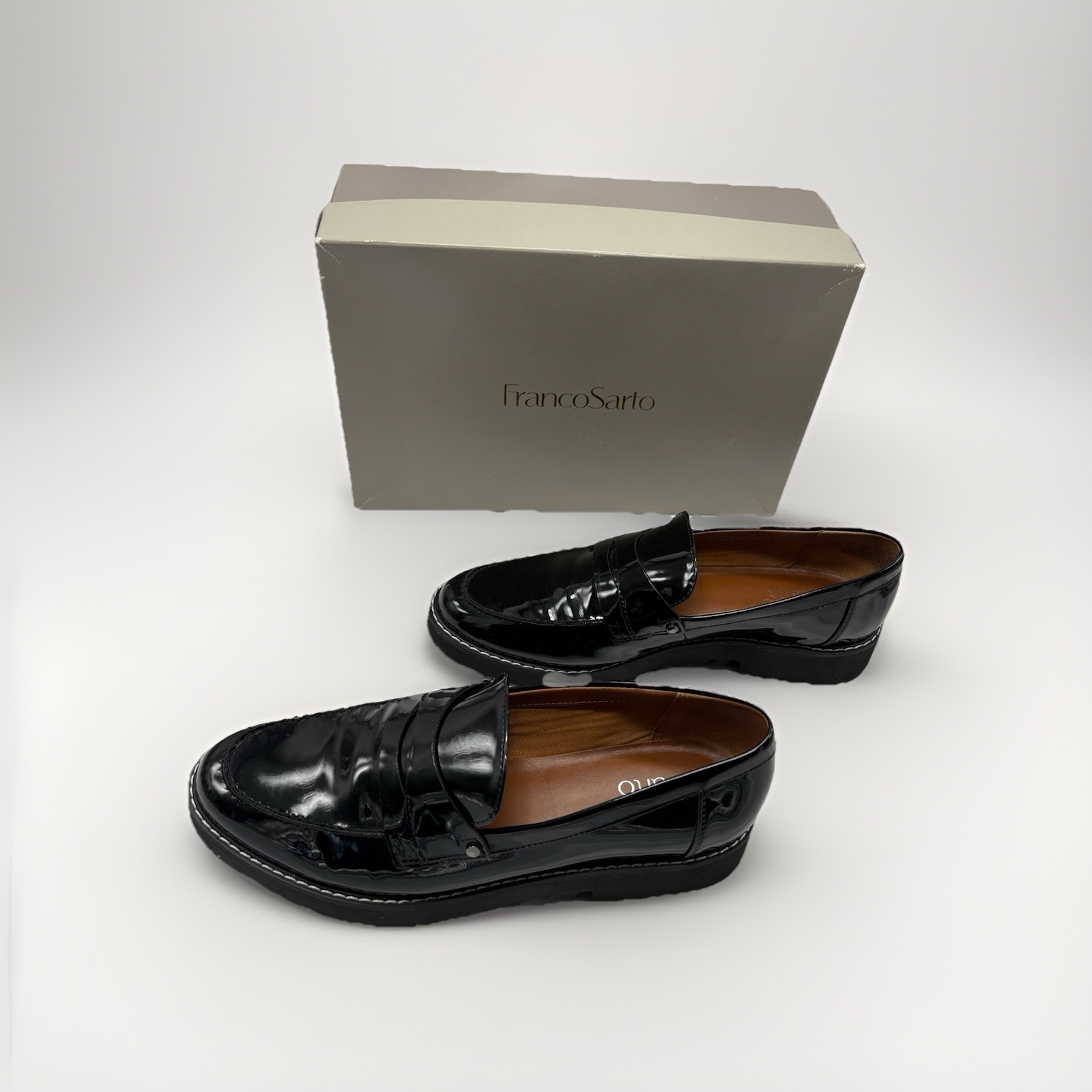 Franco Sarto Cassandra Black Patent Leather Womens Shoes 9M w/ box Penny Loafer