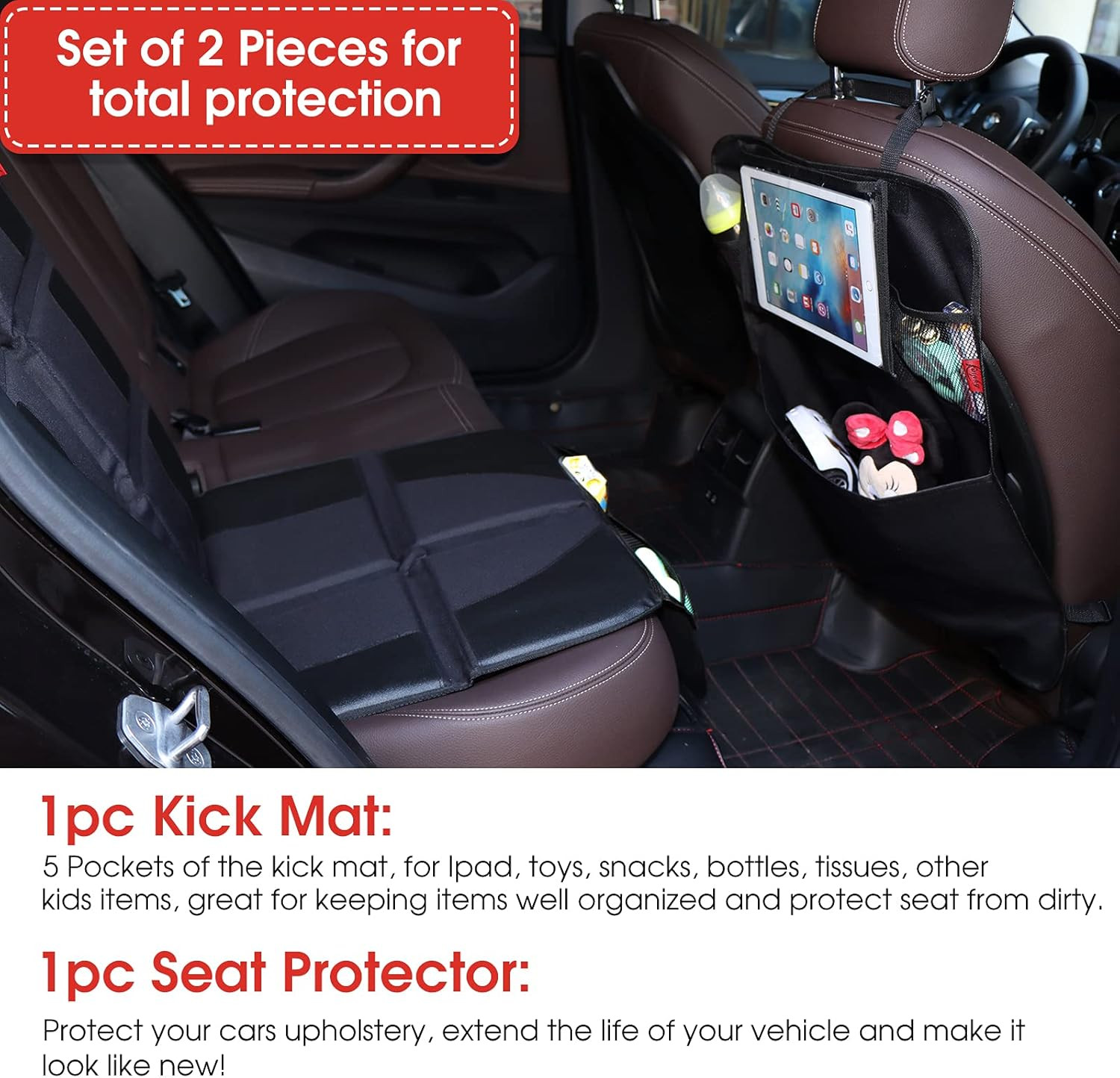 XL Car Seat Protector with Thick Padding Backseat Organizer Waterproof, Dura