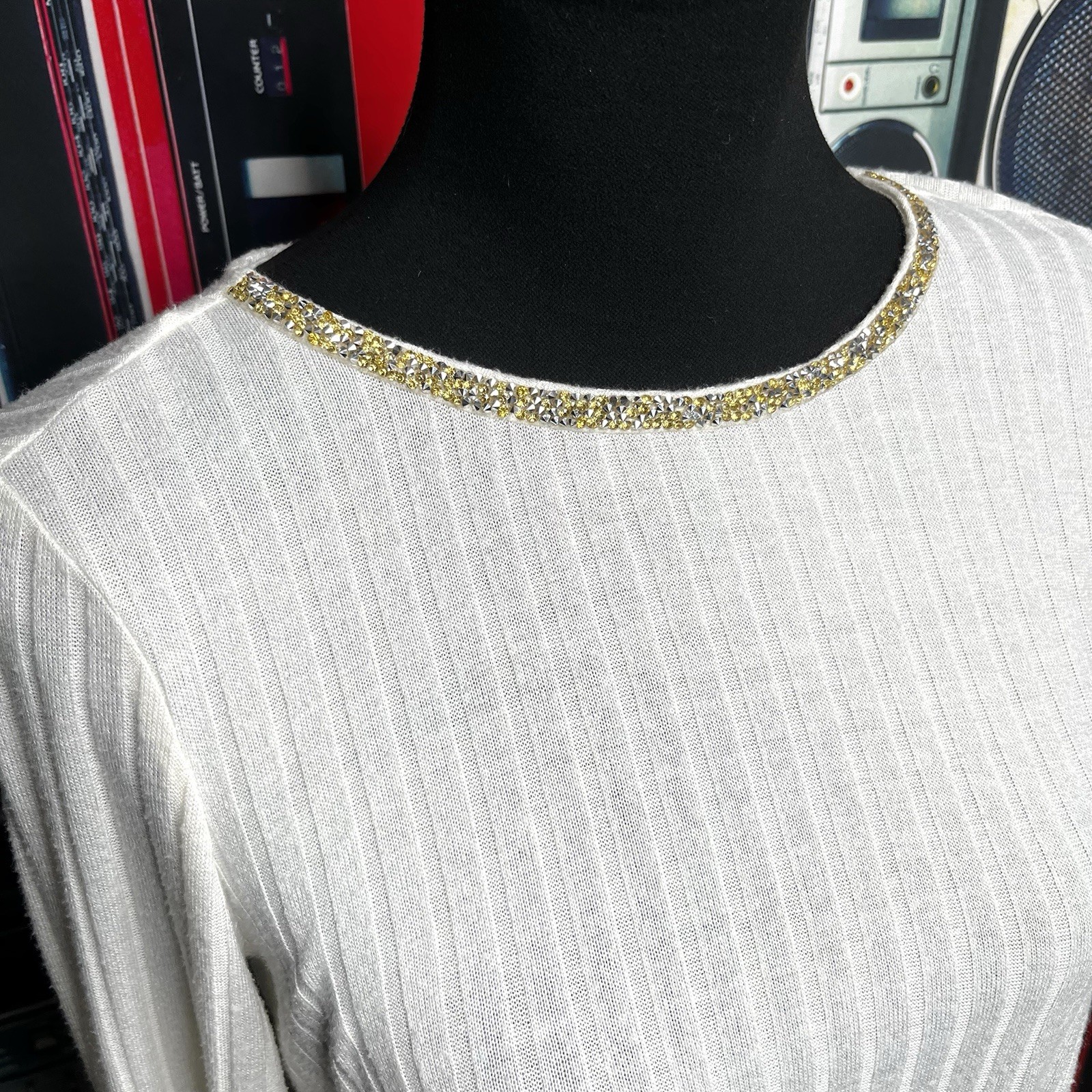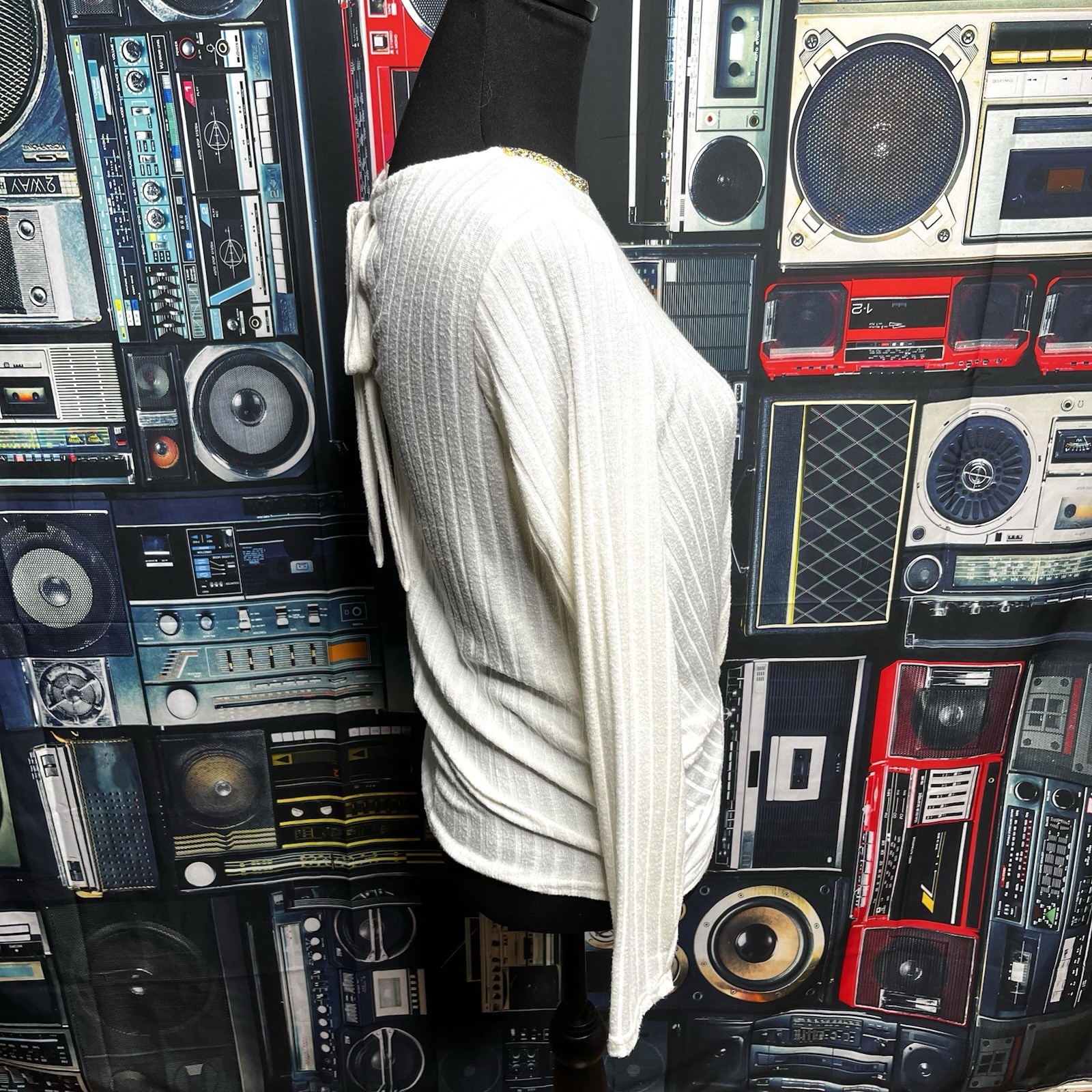 JUICY COUTURE Bling Sweater Ivory Twist Front Jeweled Neck Bow Tie Back Size S