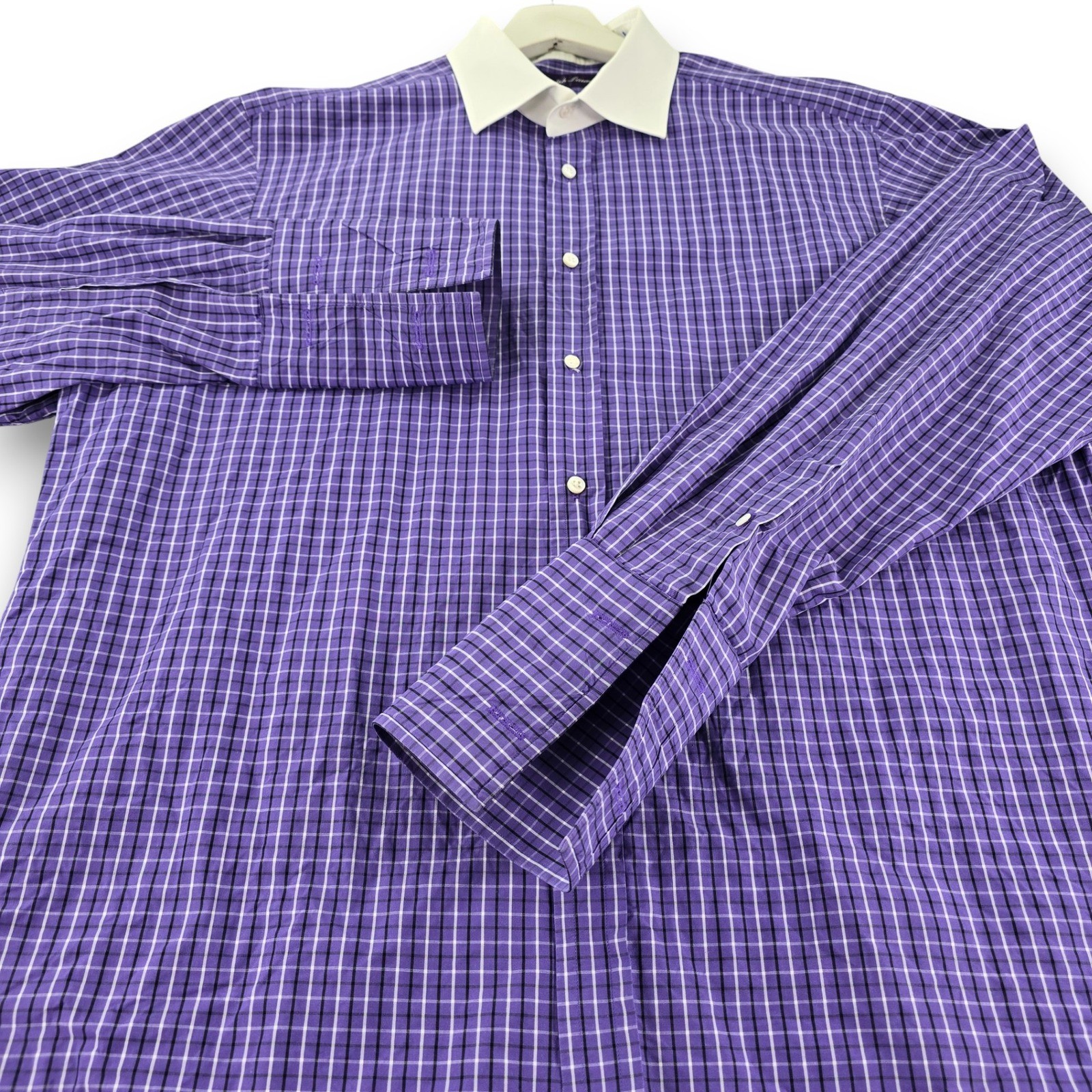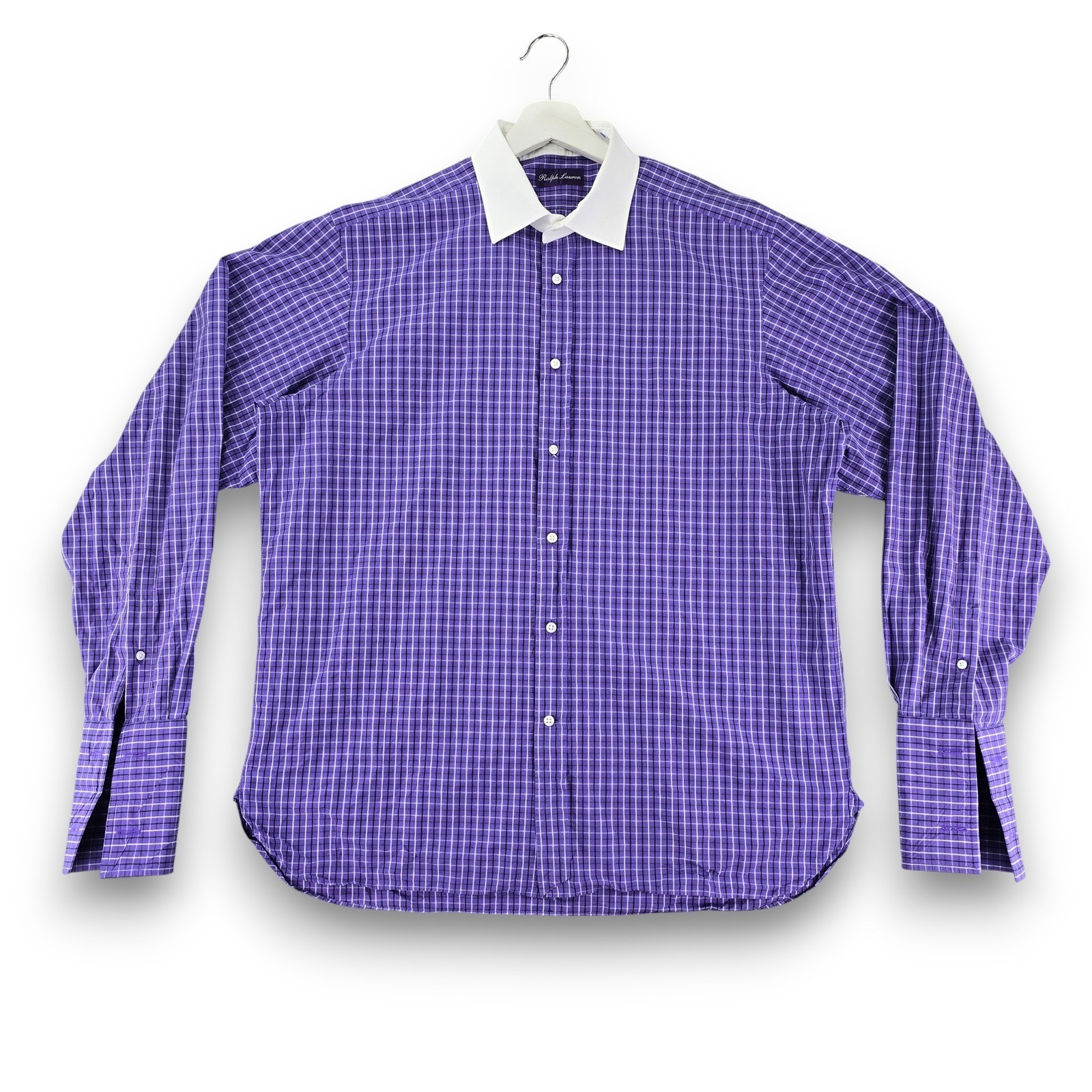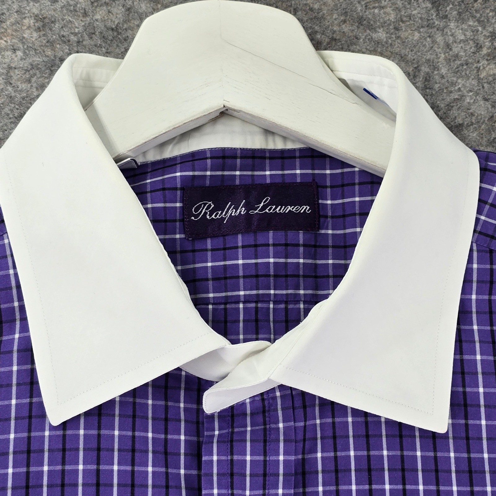 Ralph Lauren Purple Label Gingham Dress Shirt Size 17 Cotton French Cuff Italy