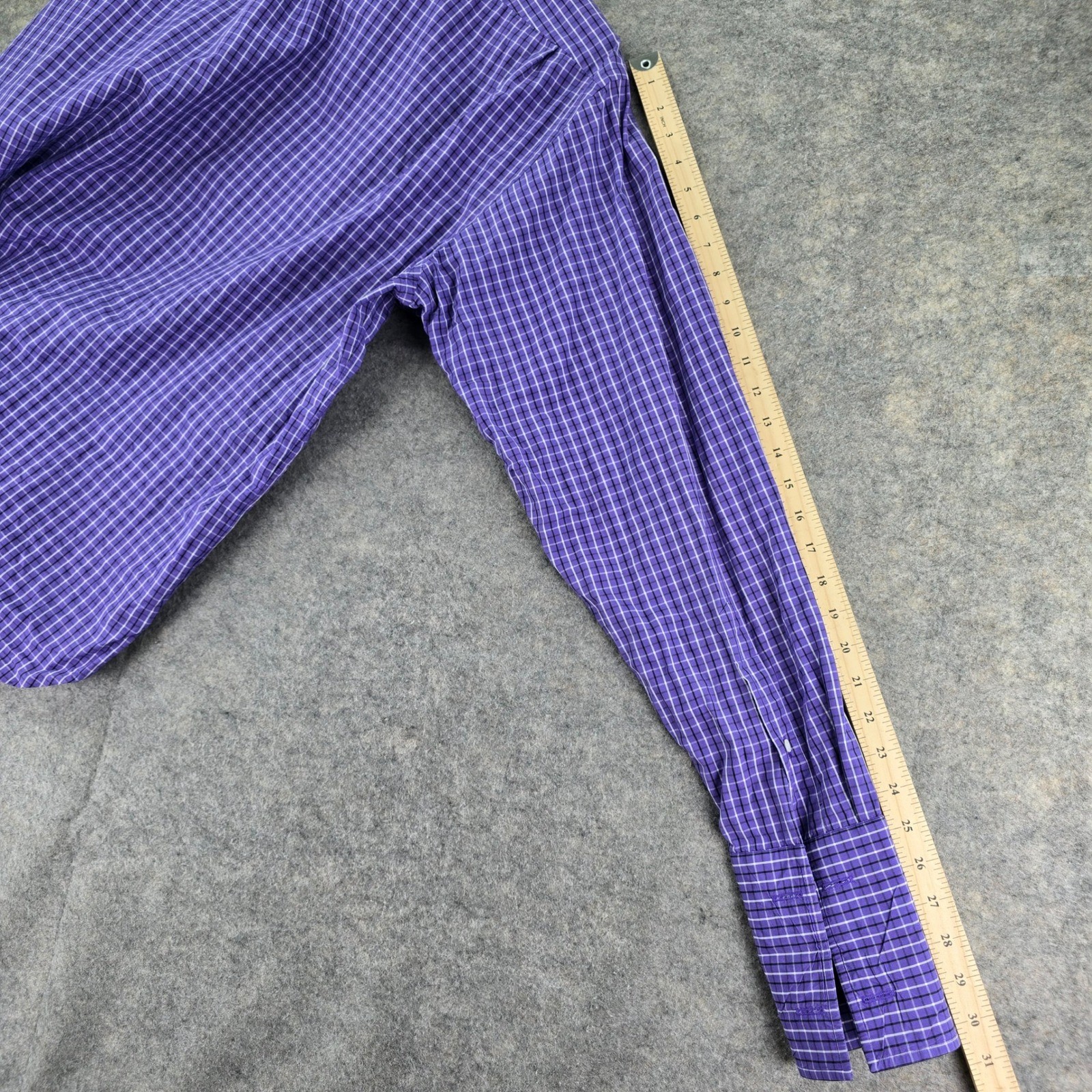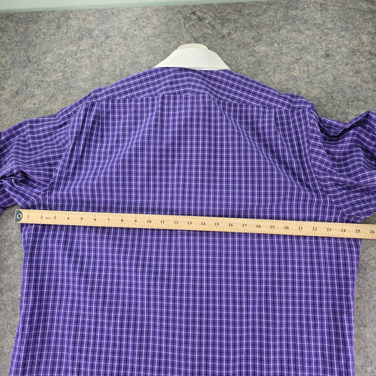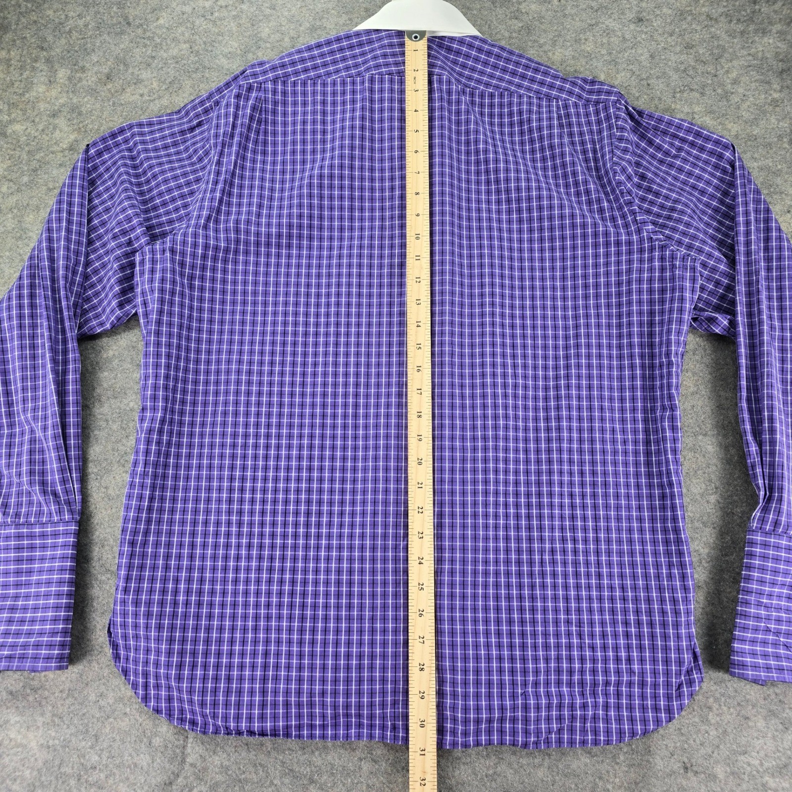 Ralph Lauren Purple Label Gingham Dress Shirt Size 17 Cotton French Cuff Italy