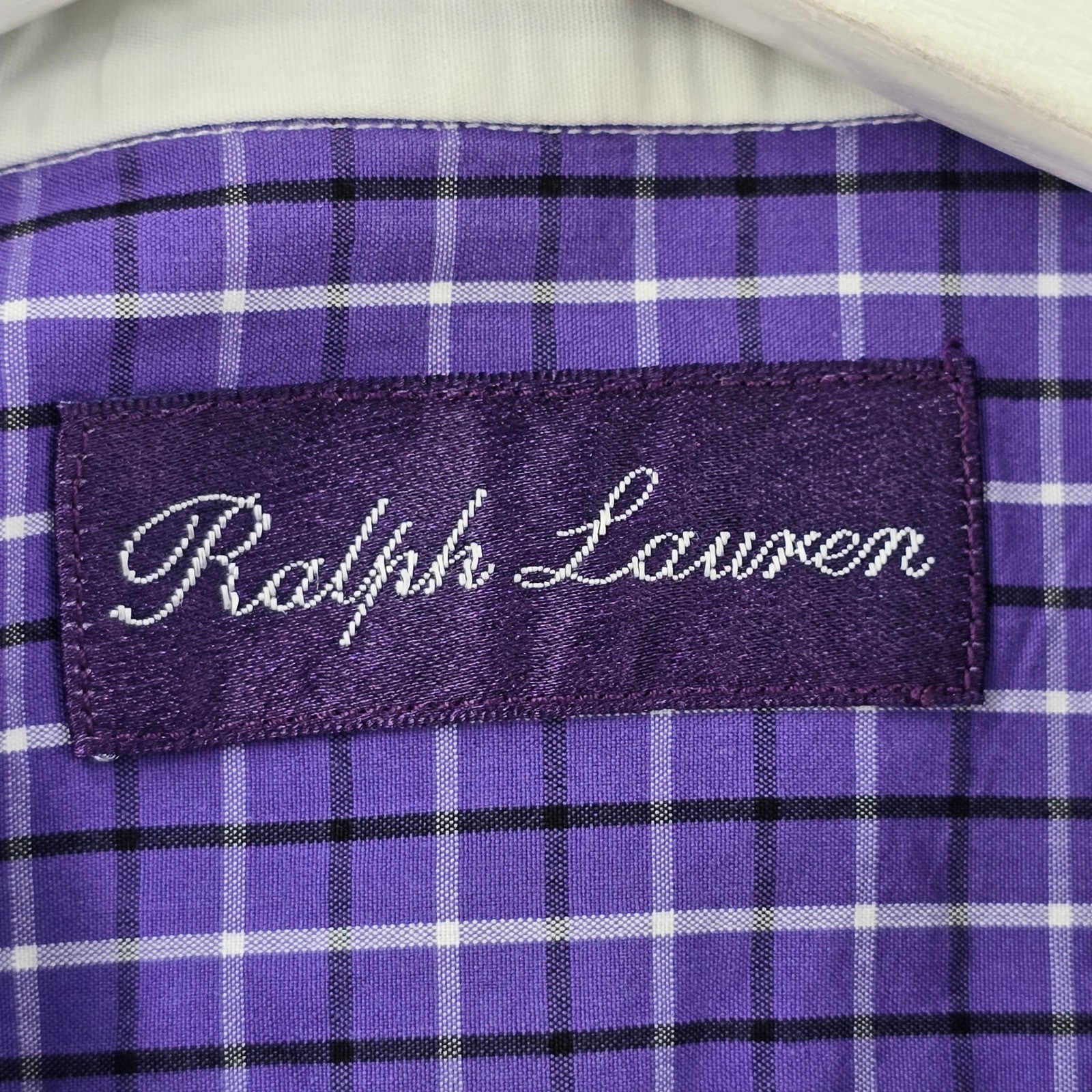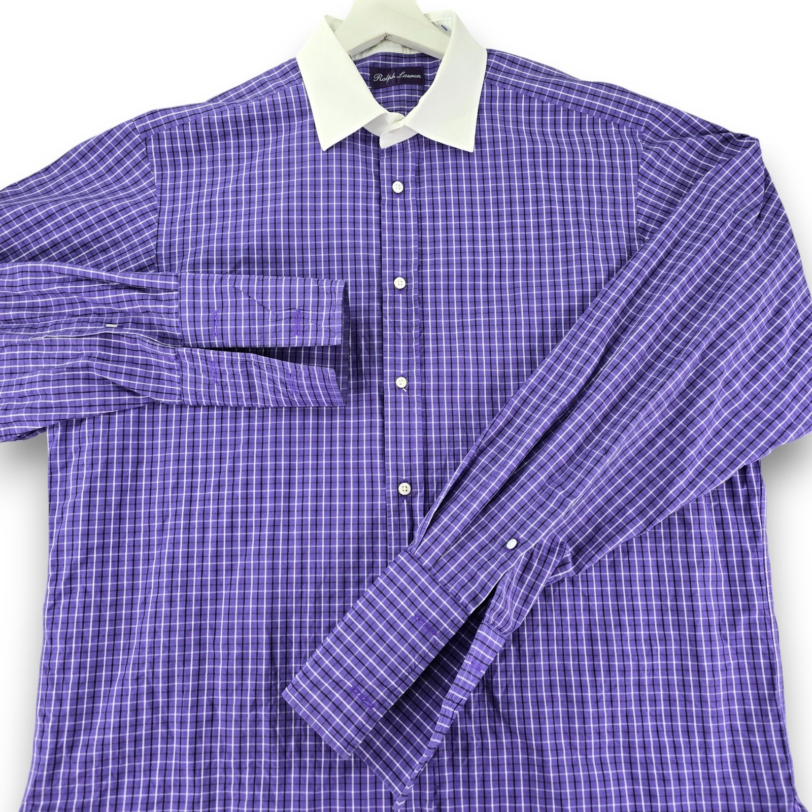 как выглядит Ralph Lauren Purple Label Gingham Dress Shirt Size 17 Cotton French Cuff Italy фото