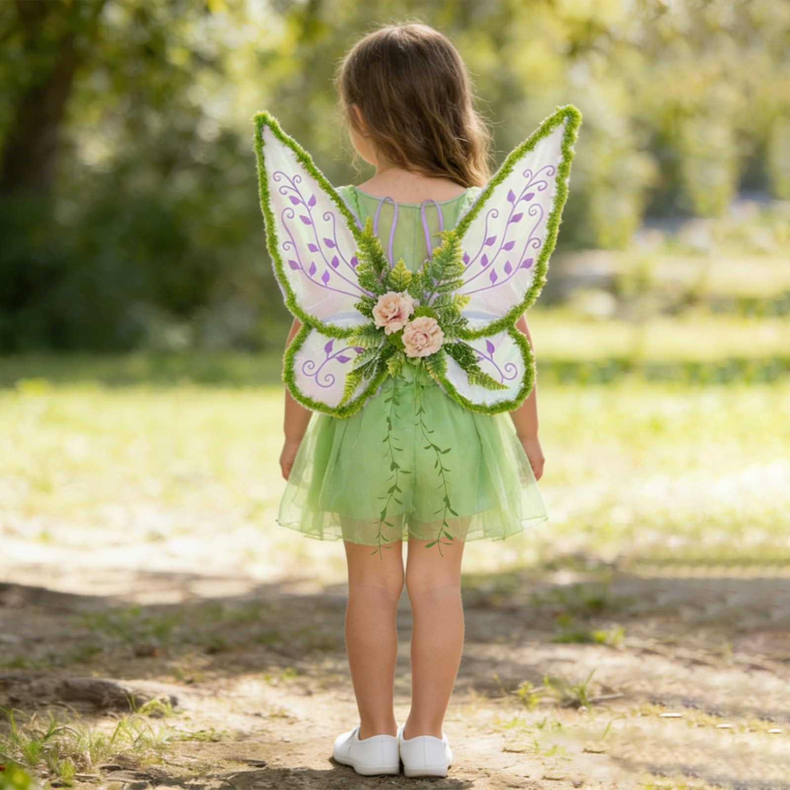 Kids Girls Elastic Shoulder Bands Glitter Butterfly Fairy Wing w/Garland Wand