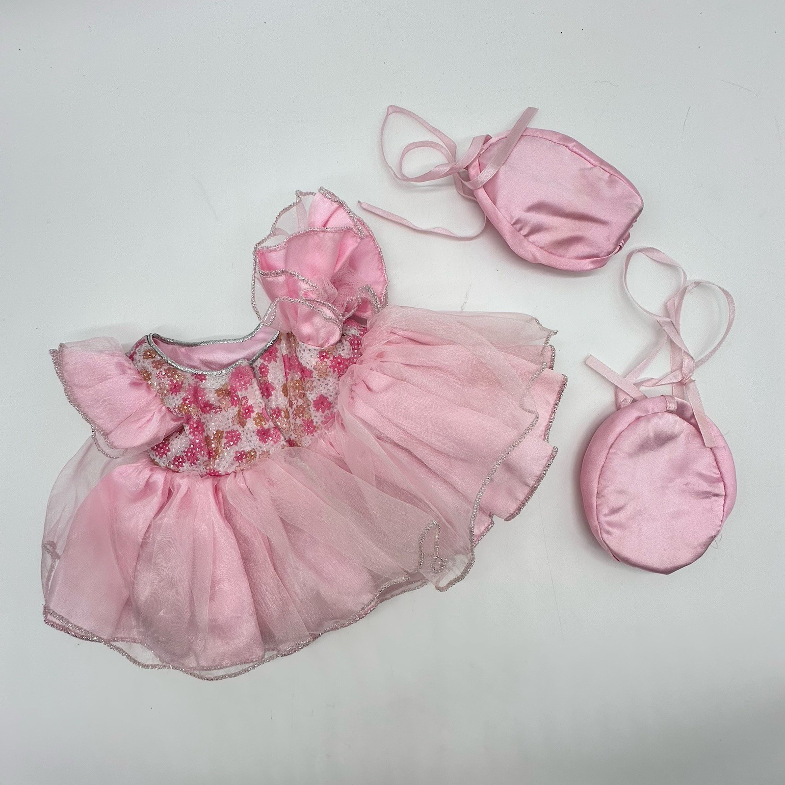 Build a Bear Princess Dress Pink Silver Glitter Tulle Ballet Teddy Slippers READ