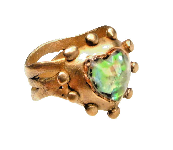 Antique Style Golden Bronze Ring-Abalone-Size 9