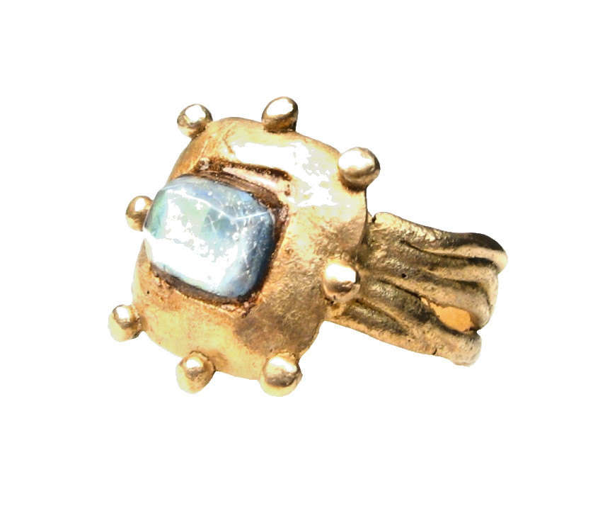 Antique Style Golden Bronze Ring-Abalone-Size 10