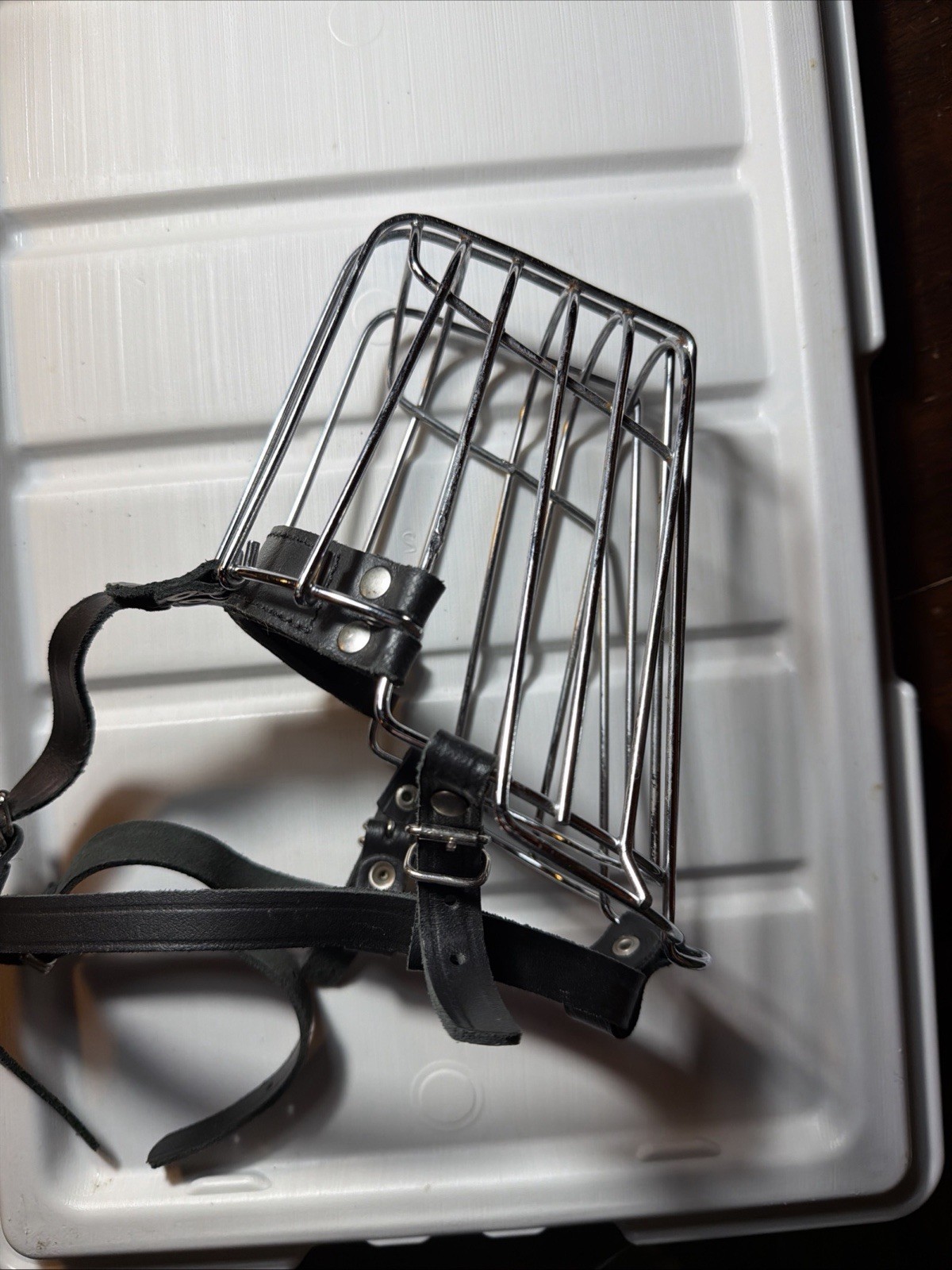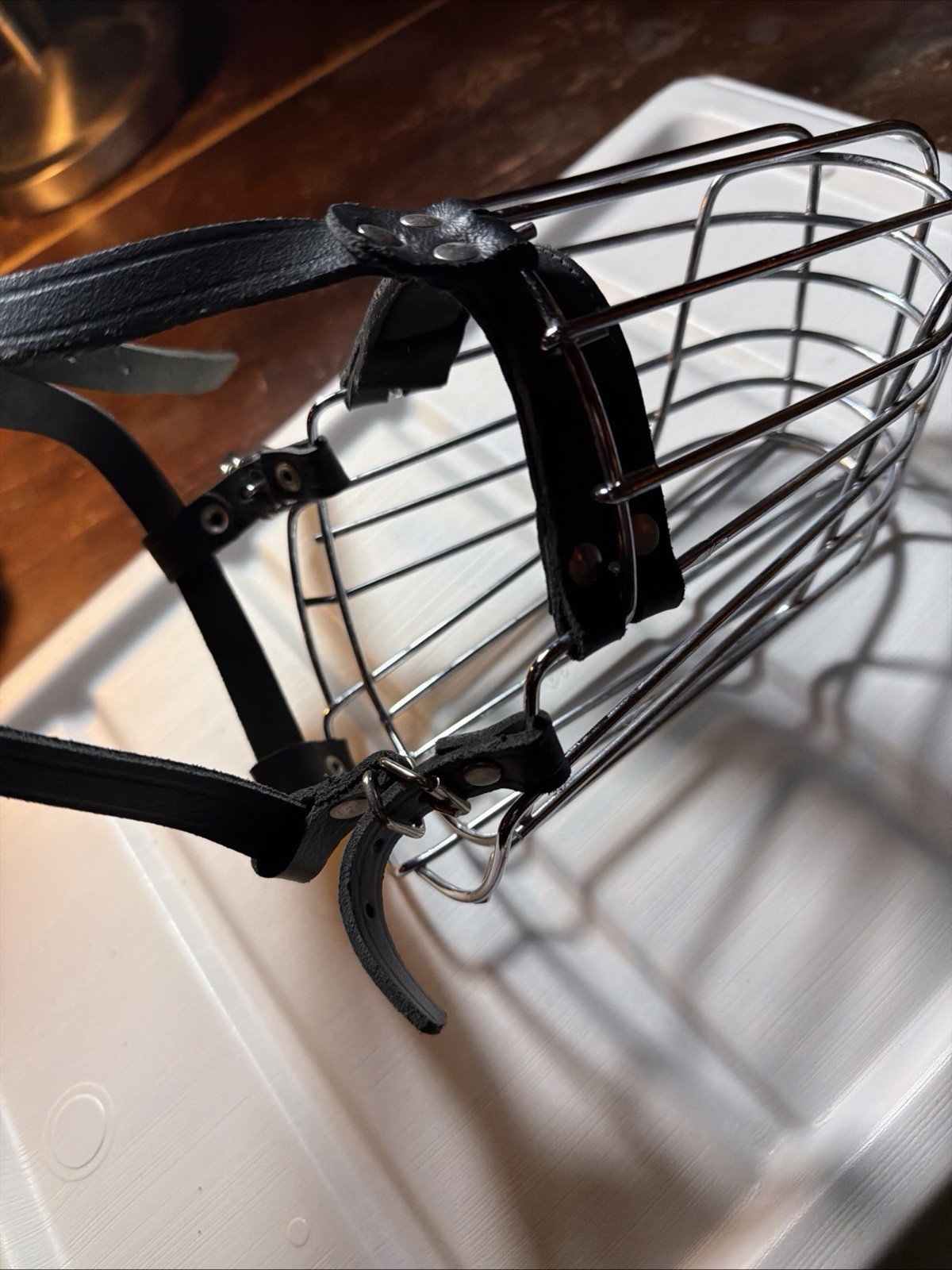 как выглядит Dog Muzzle Metal Wire Basket Shepherd Pit Bull Etc Adjustable Leather Quality фото