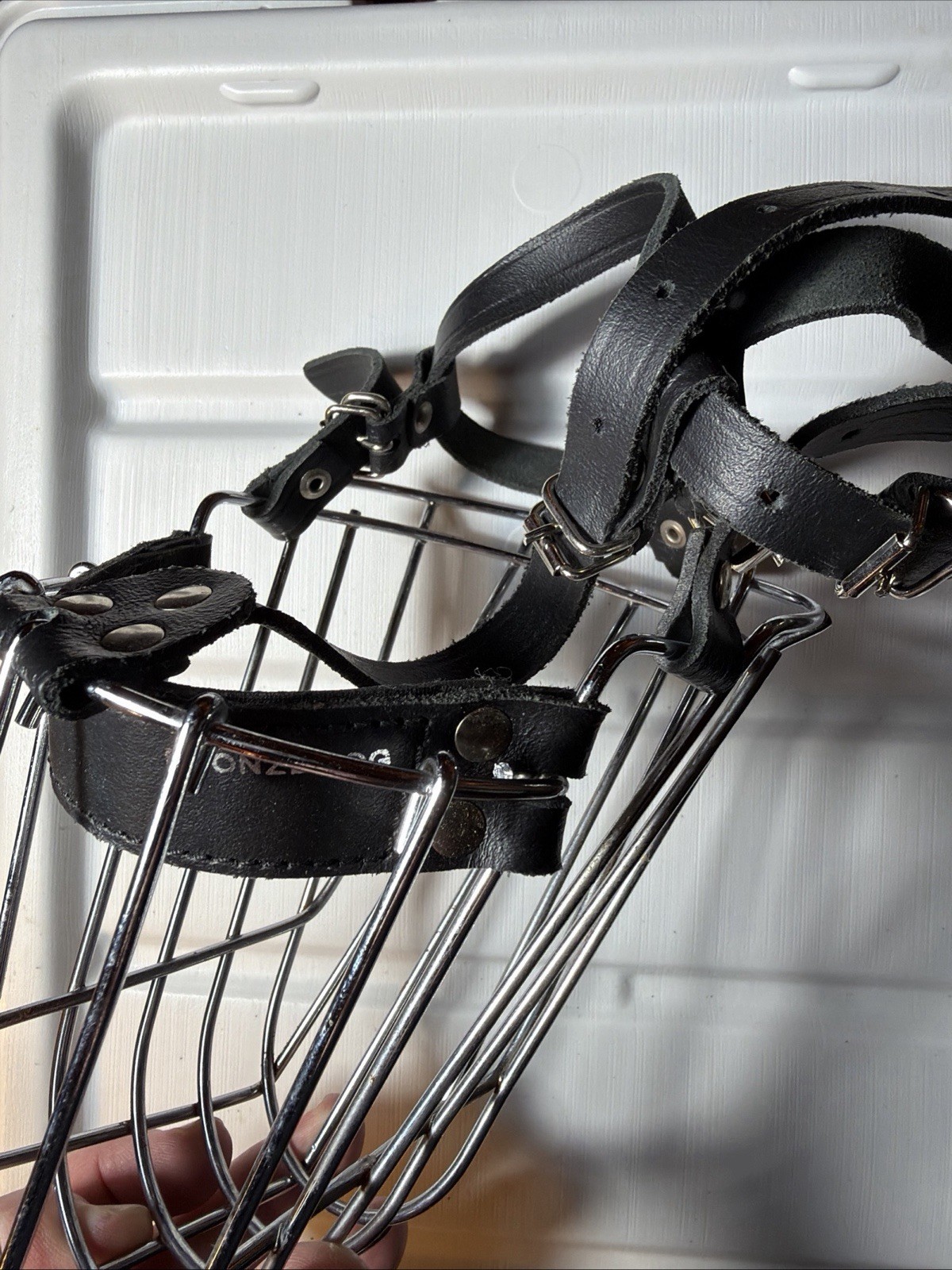 Dog Muzzle Metal Wire Basket Shepherd Pit Bull Etc Adjustable Leather Quality