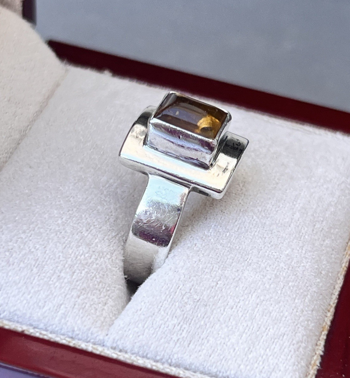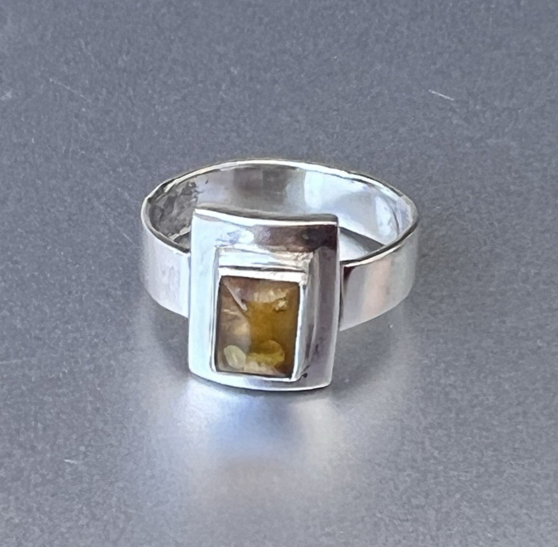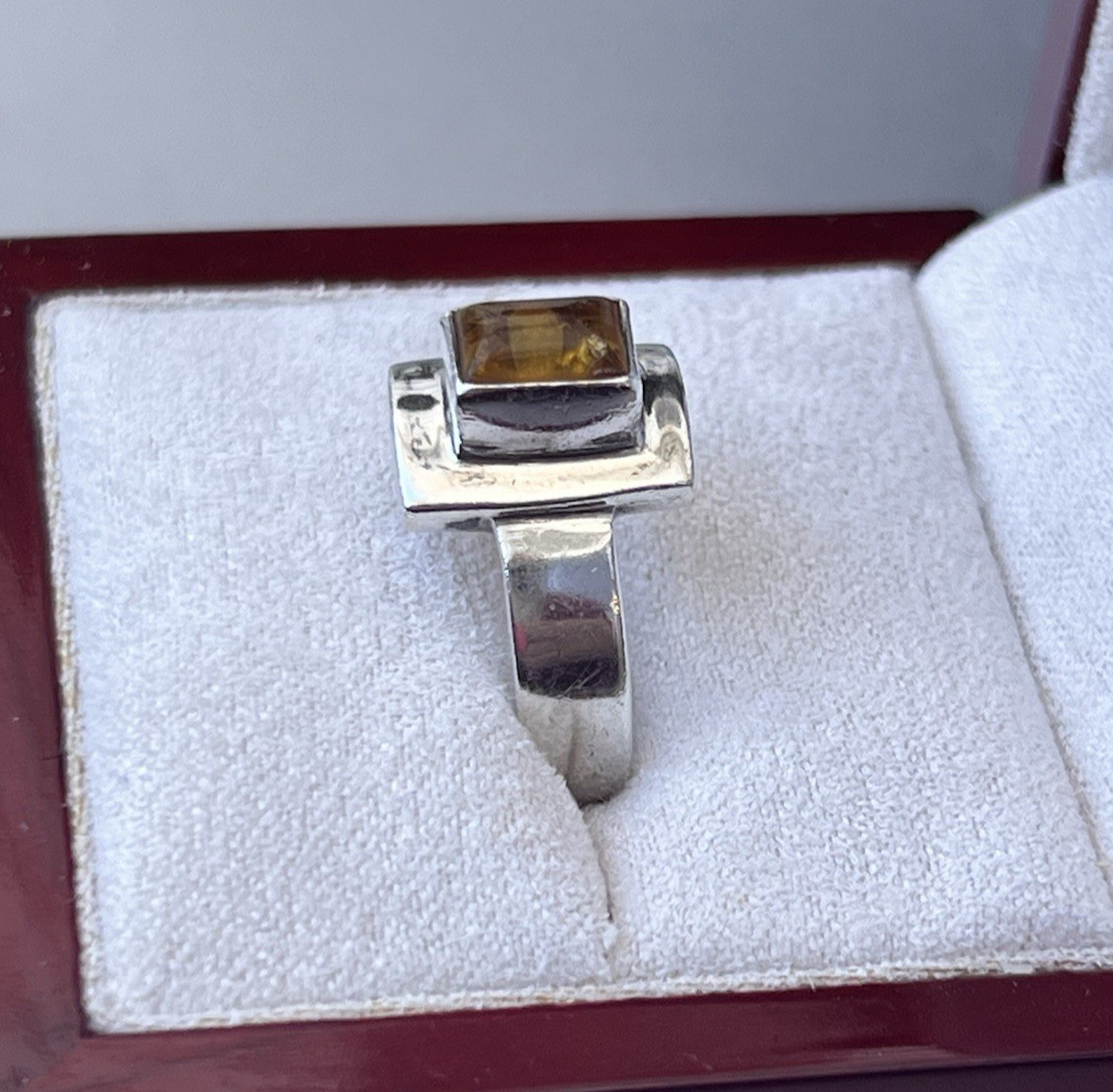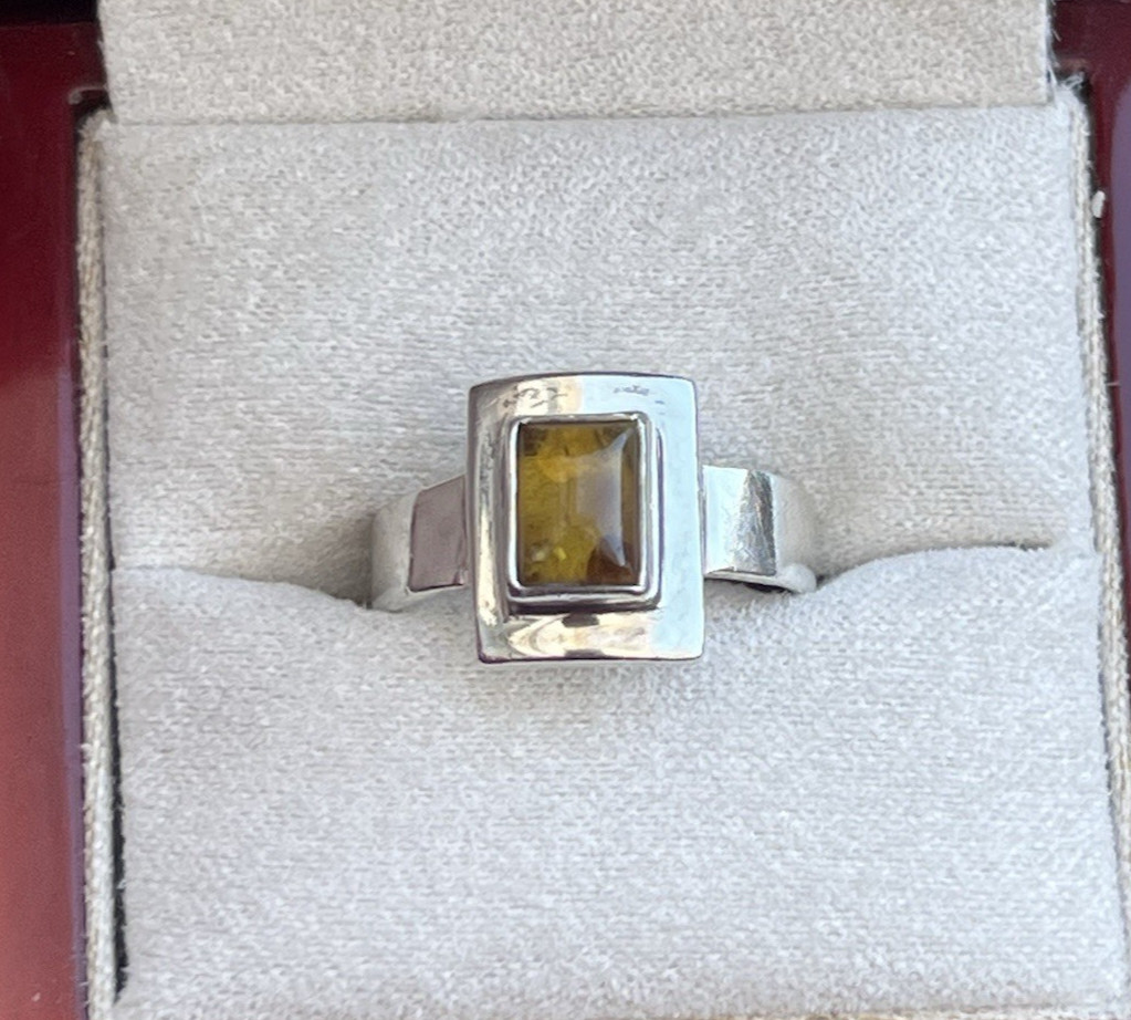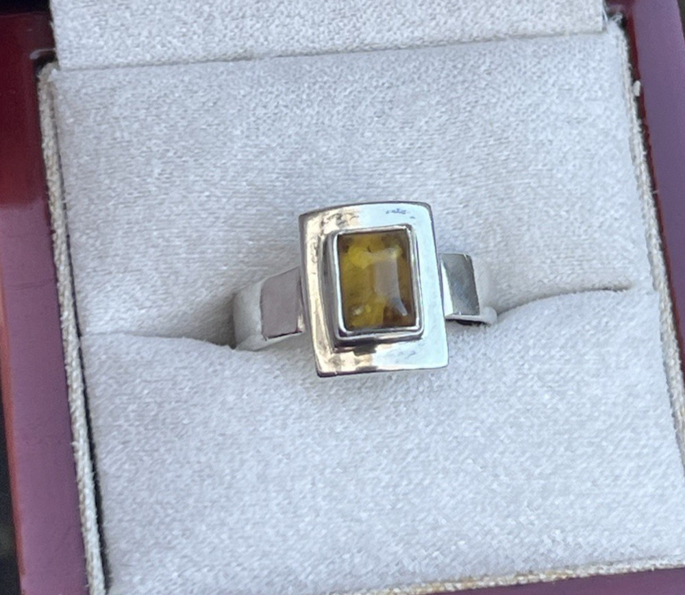 Vtg Sterling Amber Ring, Modernist Rectangular Setting, 6 grams, Size 8.75