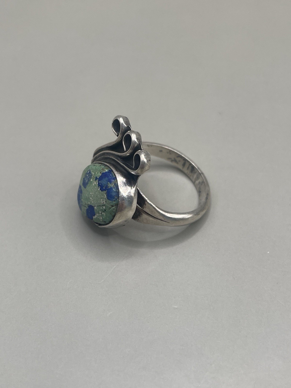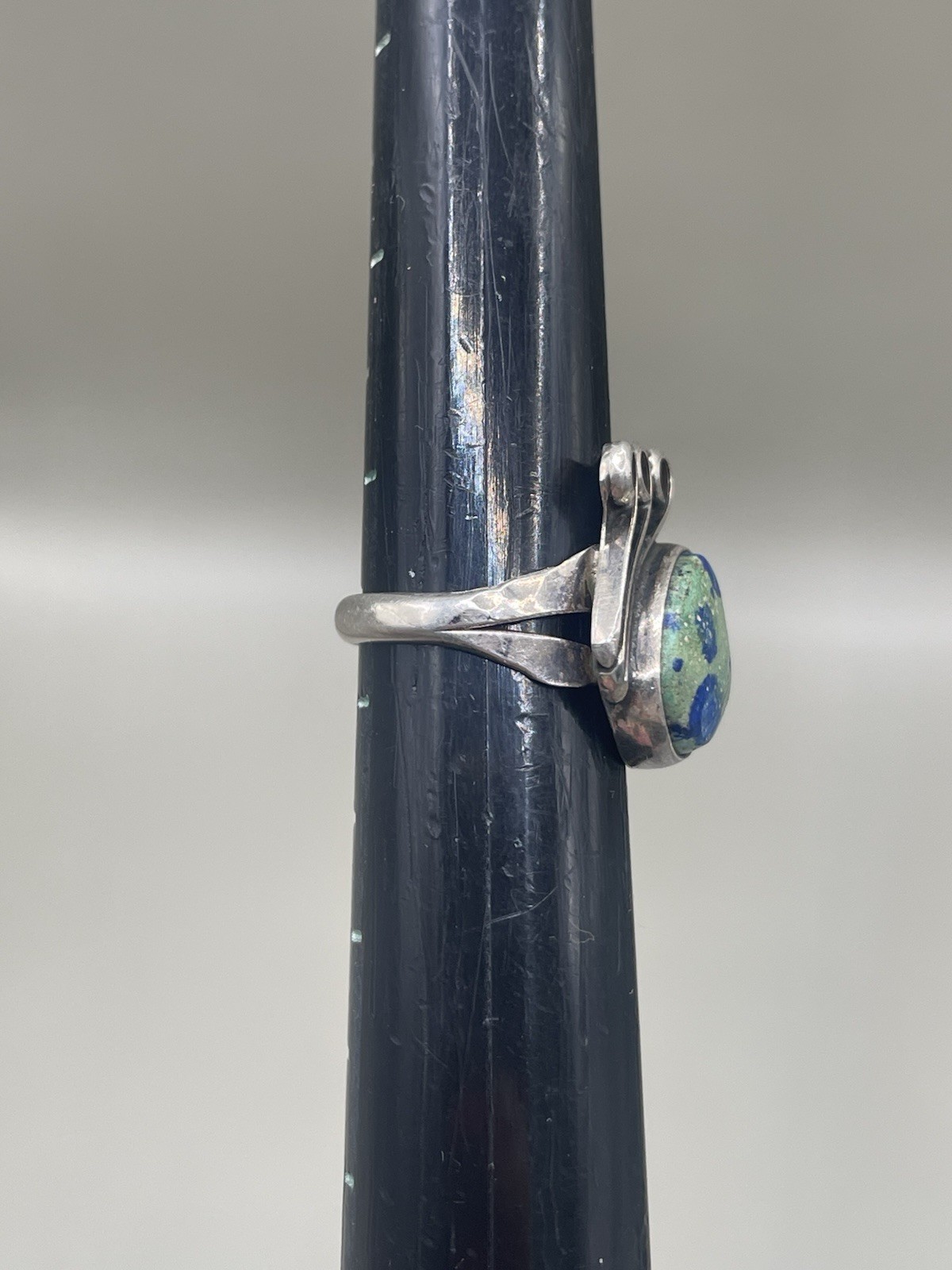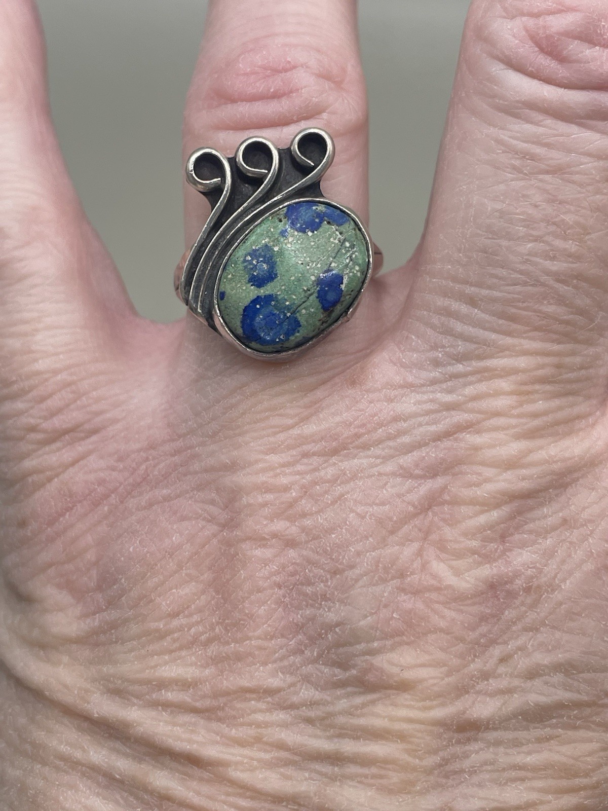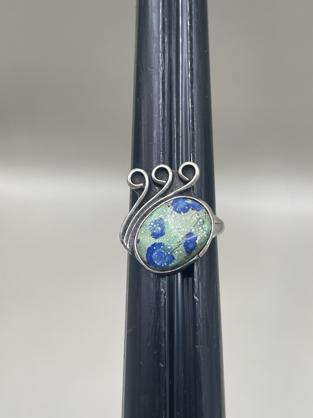 Vintage Artisan Sterling Silver 925 Azurite 7.5 Scrolls Ring 5.58g