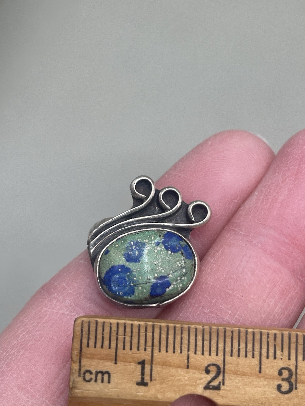 как выглядит Vintage Artisan Sterling Silver 925 Azurite 7.5 Scrolls Ring 5.58g фото