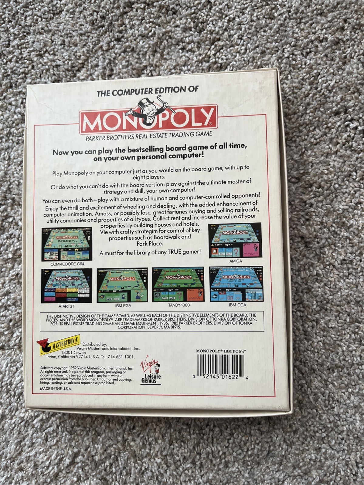 Monopoly IBM PC TANDY 1000 5.25 1989 Vintage COMPLETE Original Packaging