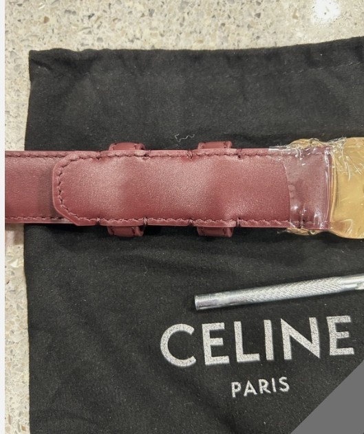 как выглядит CELINE Burgundy Belt With Gold Buckle- size 80 фото