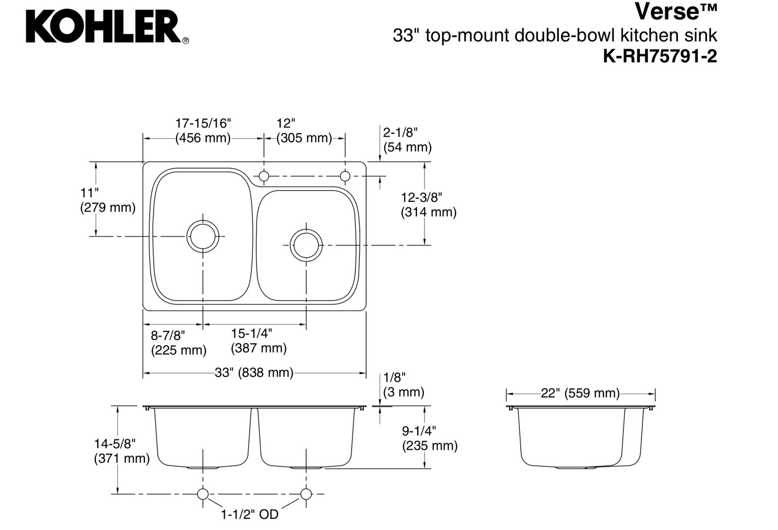 Verse 33 top-mount double-bowl kitchen sinkK-RH75791-2-NA